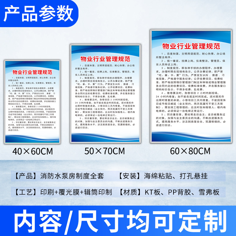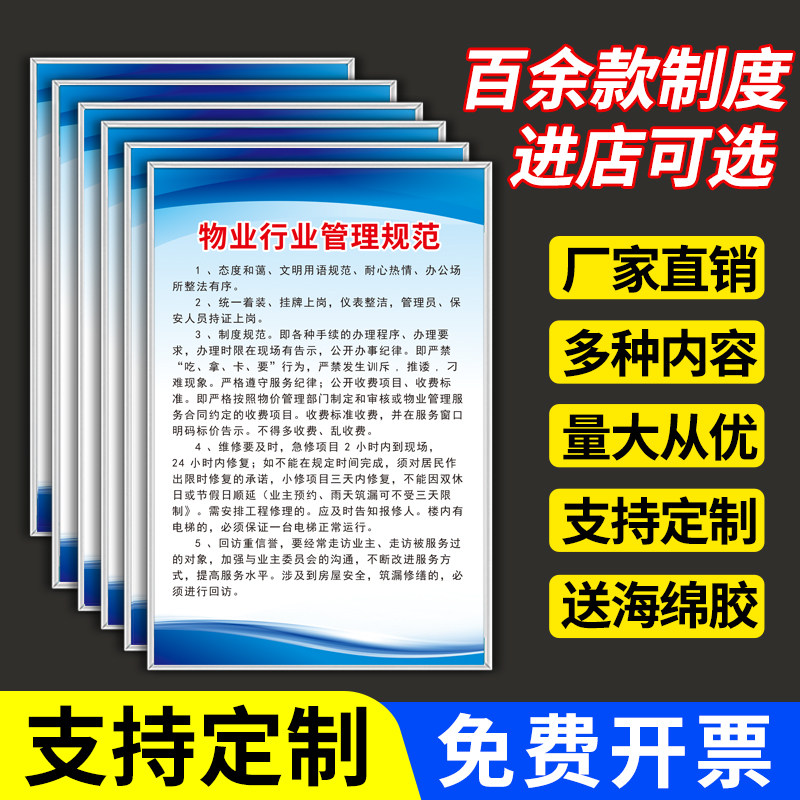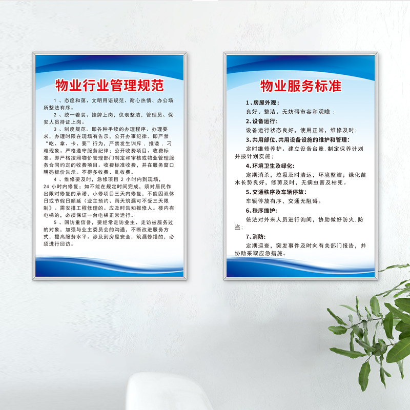 物业规章制度牌小区管理员保洁员岗位职责与要求指示牌消防安全标识行业服务标准规范提示牌挂牌上墙标语定制