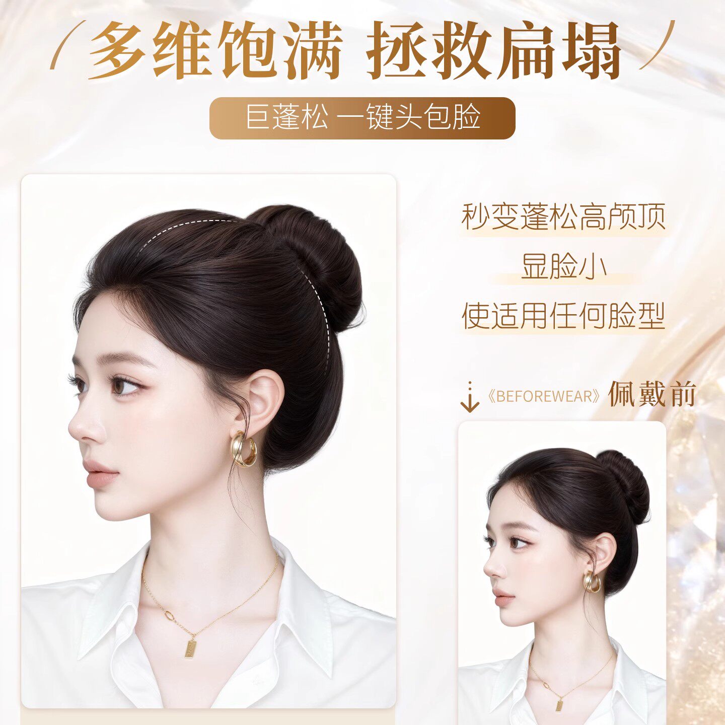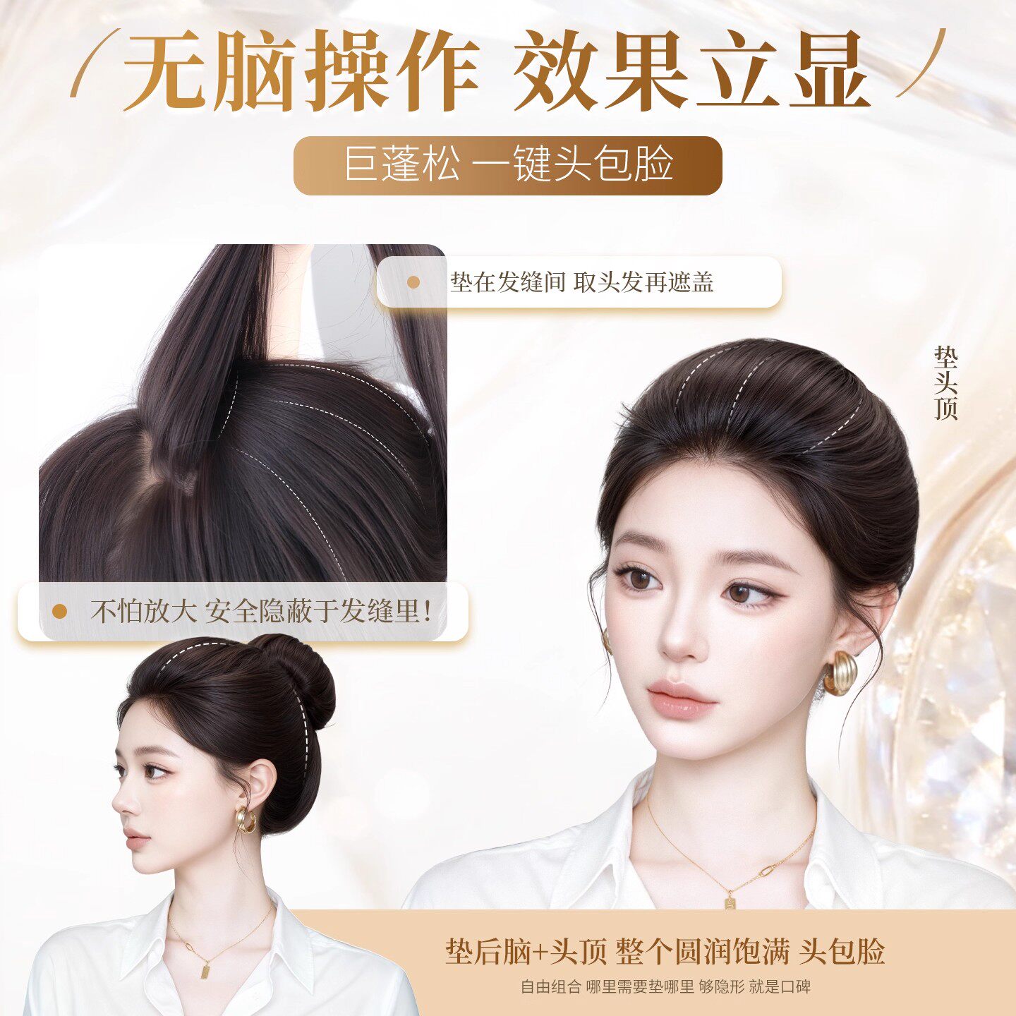 不用戴发网假发女片头顶补发增发量蓬松高颅顶遮白发大波浪长卷发