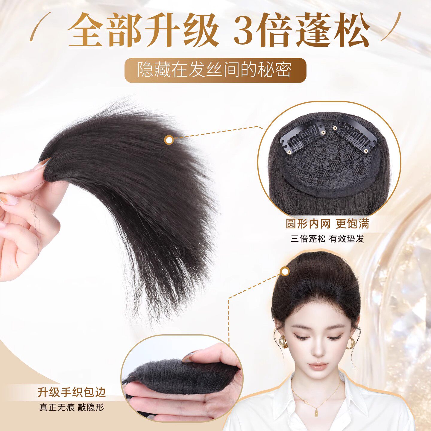 玉米须仿真假发片头顶增发量高颅顶发根垫发神器加倍蓬松无痕发片