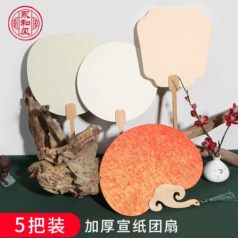极速永和风团扇空白宣纸加厚双面绘画创作扇子国画工笔画半生熟卡