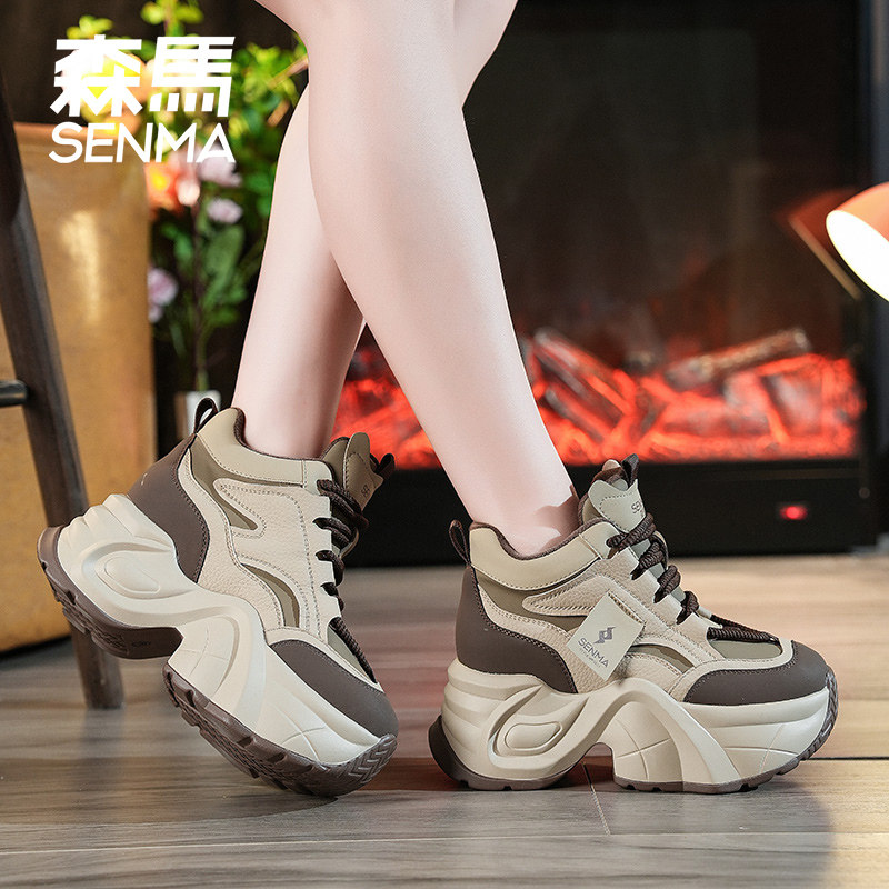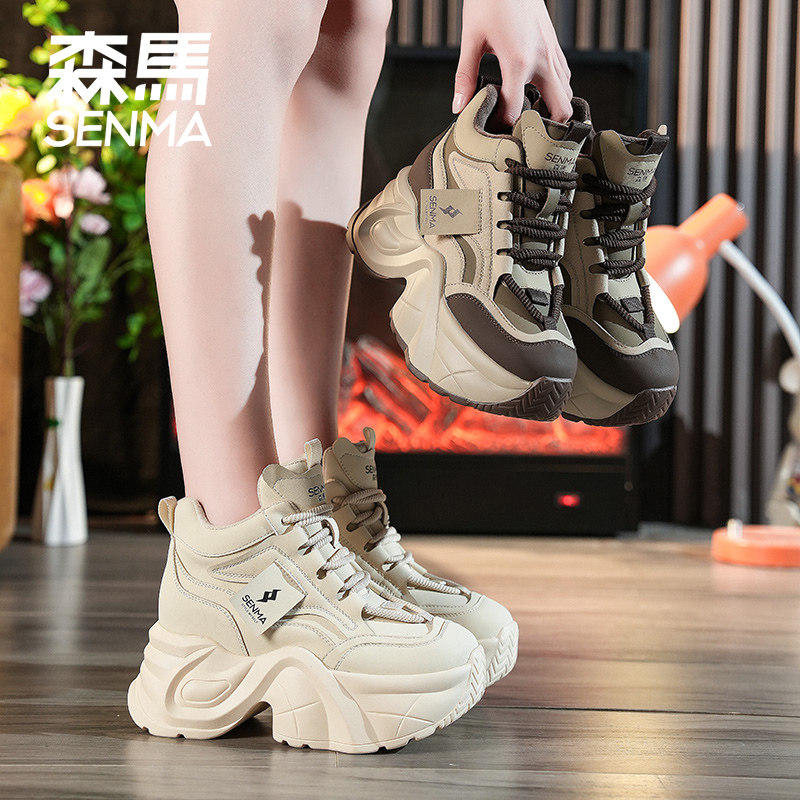 森马老爹鞋女冬季高跟2025新款厚底鞋子内增高女鞋增高9cm高板鞋