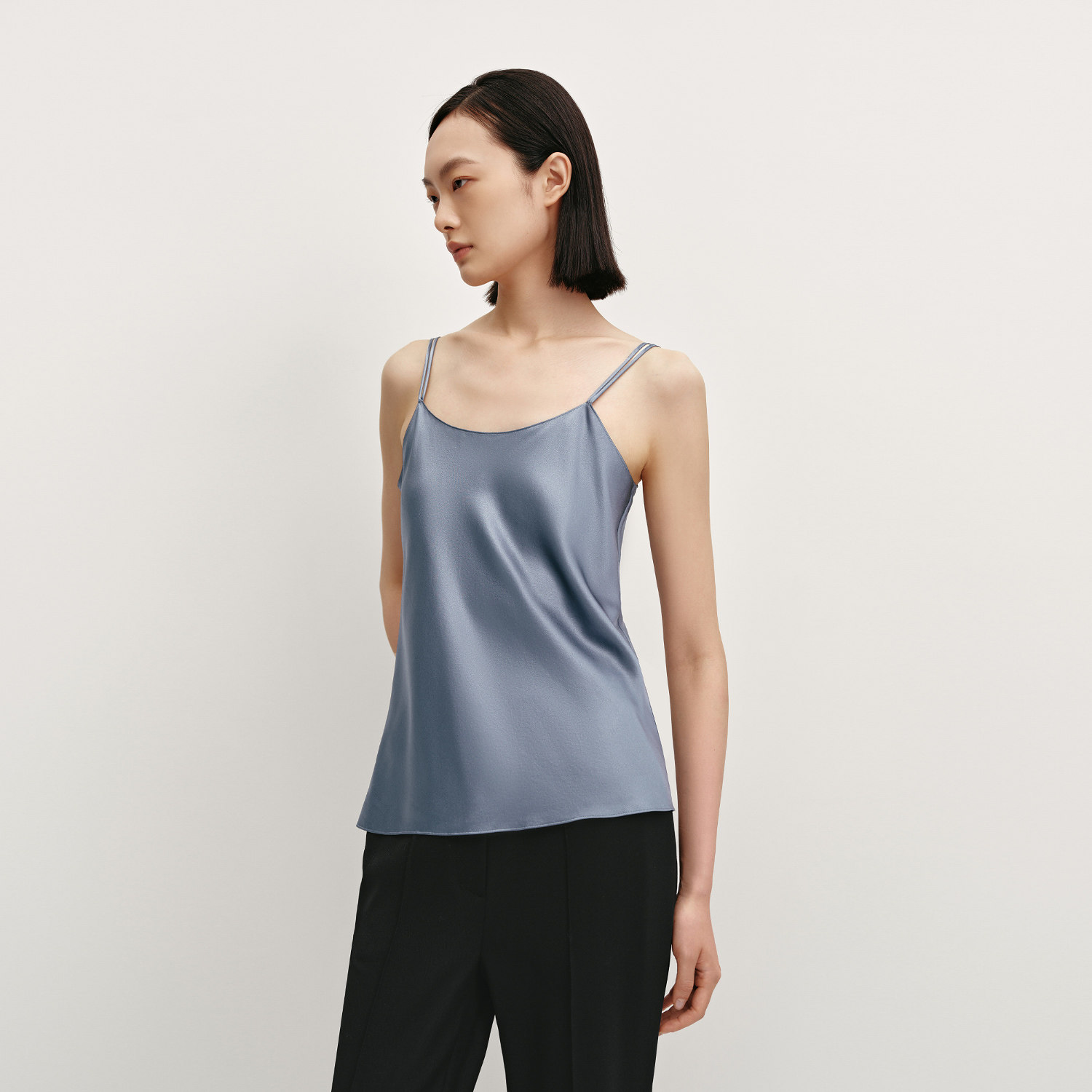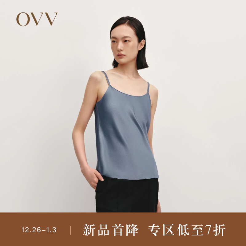 【重磅真丝】OVV秋冬热卖女装20MM缎面绉斜裁双肩带吊带