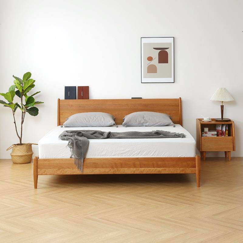 北欧实木床现代简约主卧双人床1.5米1.8米樱桃木日式卧室家具婚床