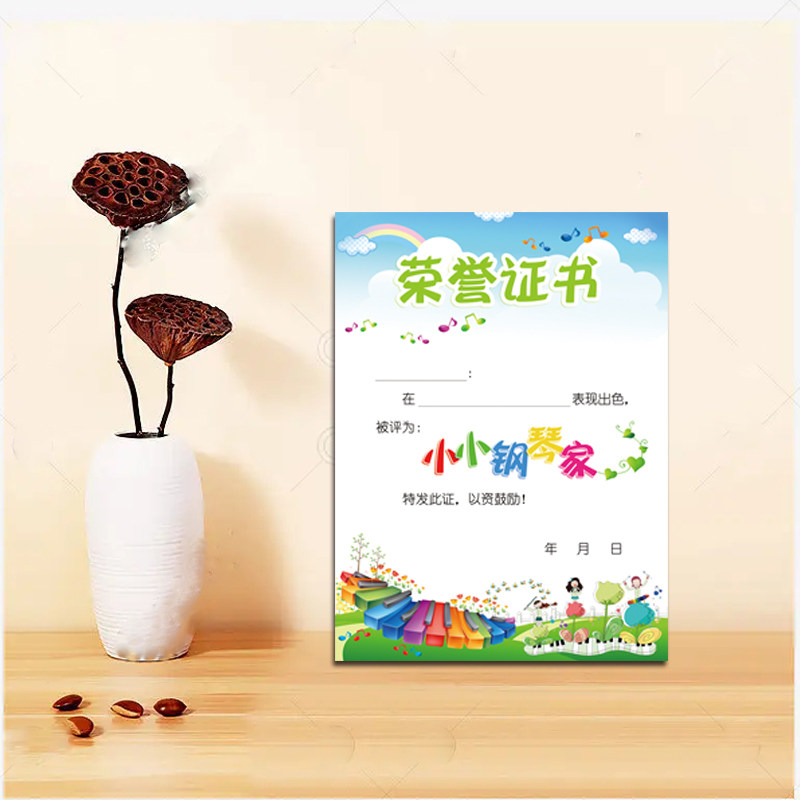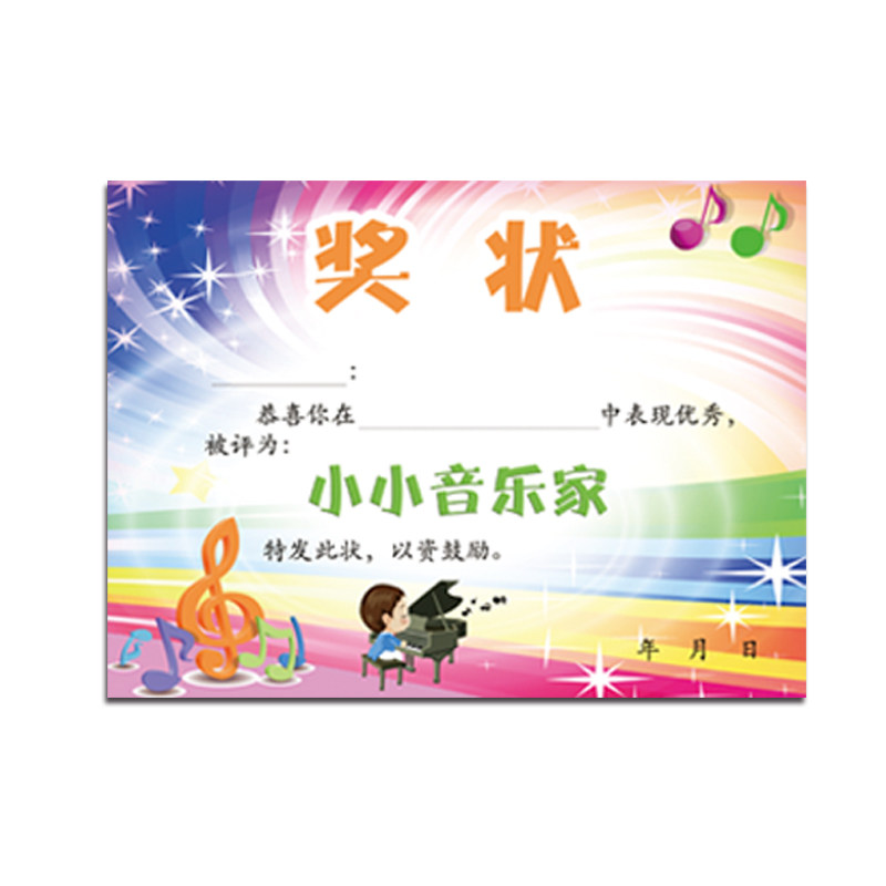 a4音乐奖状钢琴演奏歌唱奖状卡通可爱小学生比赛奖状六一奖状定制