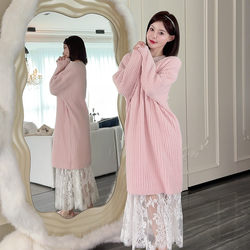 DIMDEVL汀黛25冬季睡衣女珍珠链圆领套头宽松加厚保暖半边绒睡裙