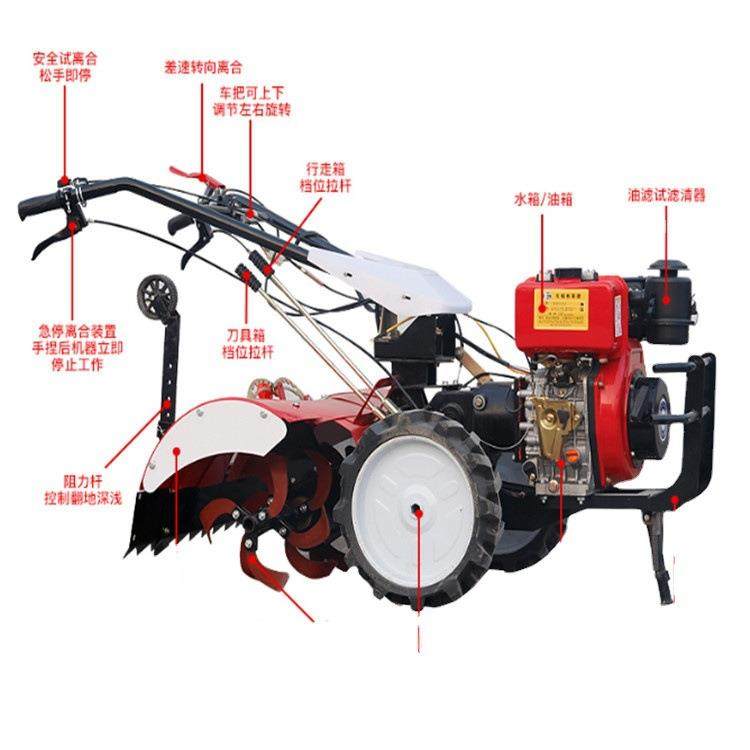 13马力风冷柴油微耕机四驱后旋开沟犁地机甘肃多用途手扶旋耕机