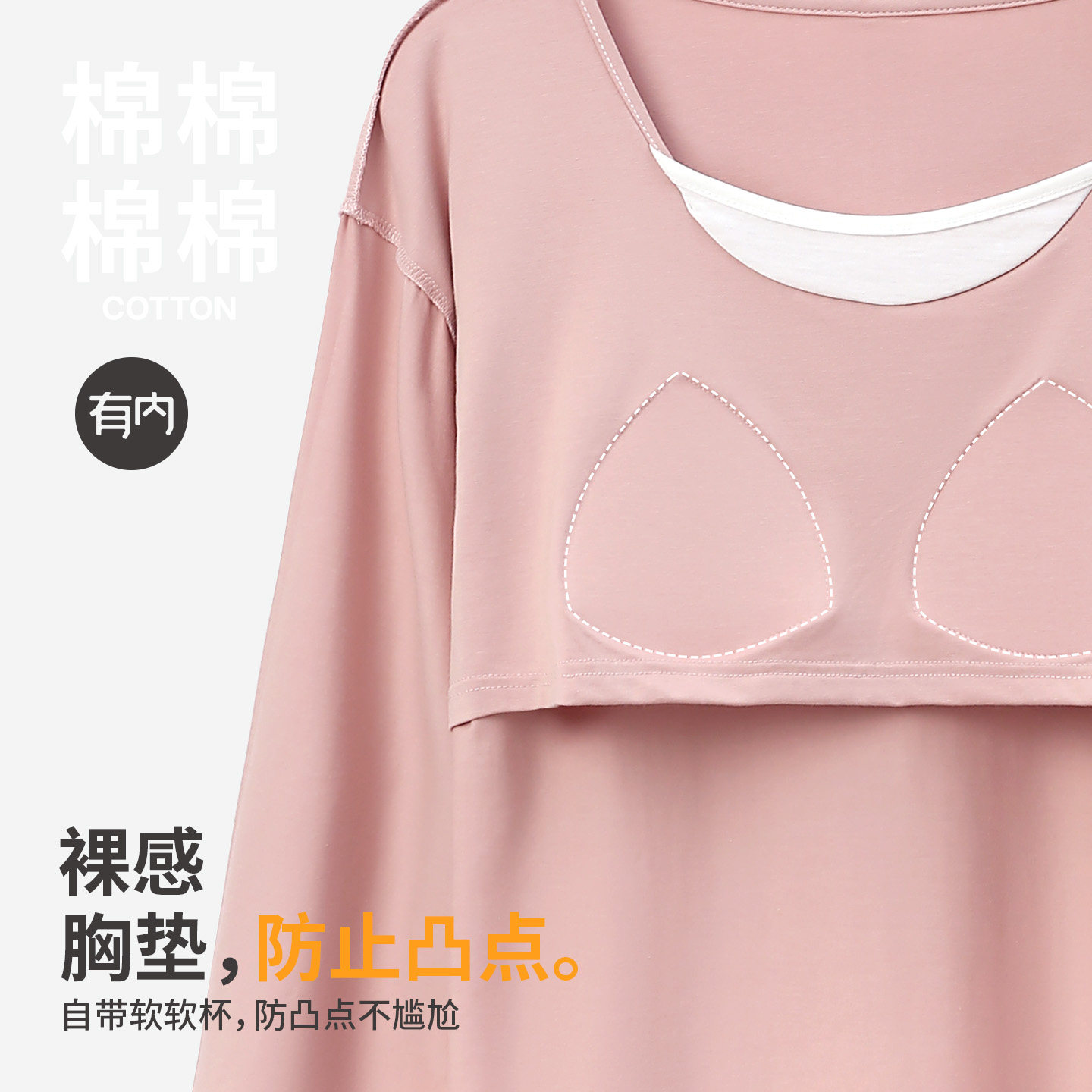 有内a类棉睡衣女款带胸垫2026新春夏家居服套装男士长袖情侣圆领
