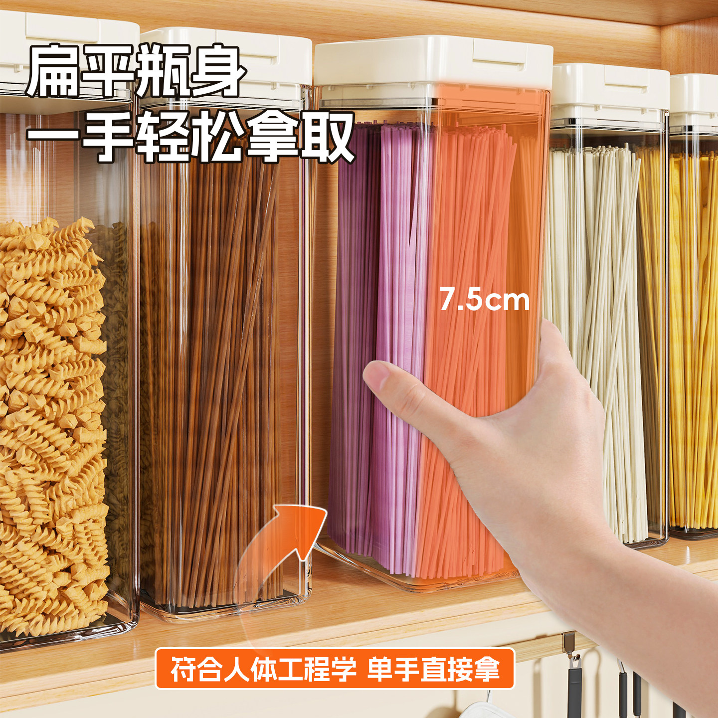 面条收纳盒透明五谷杂粮整理架带盖盒挂面置物桶密封式粮食储物罐