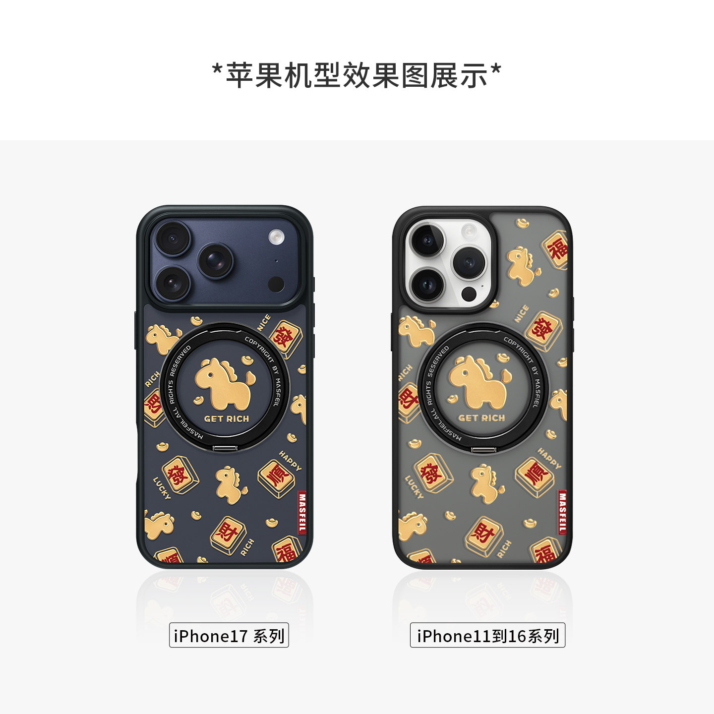 MASFEIL × 麻将小马适用苹果17promax手机壳iPhone16pro新款磁吸带支架ip15全包Fo5支点高级感17可爱套新年