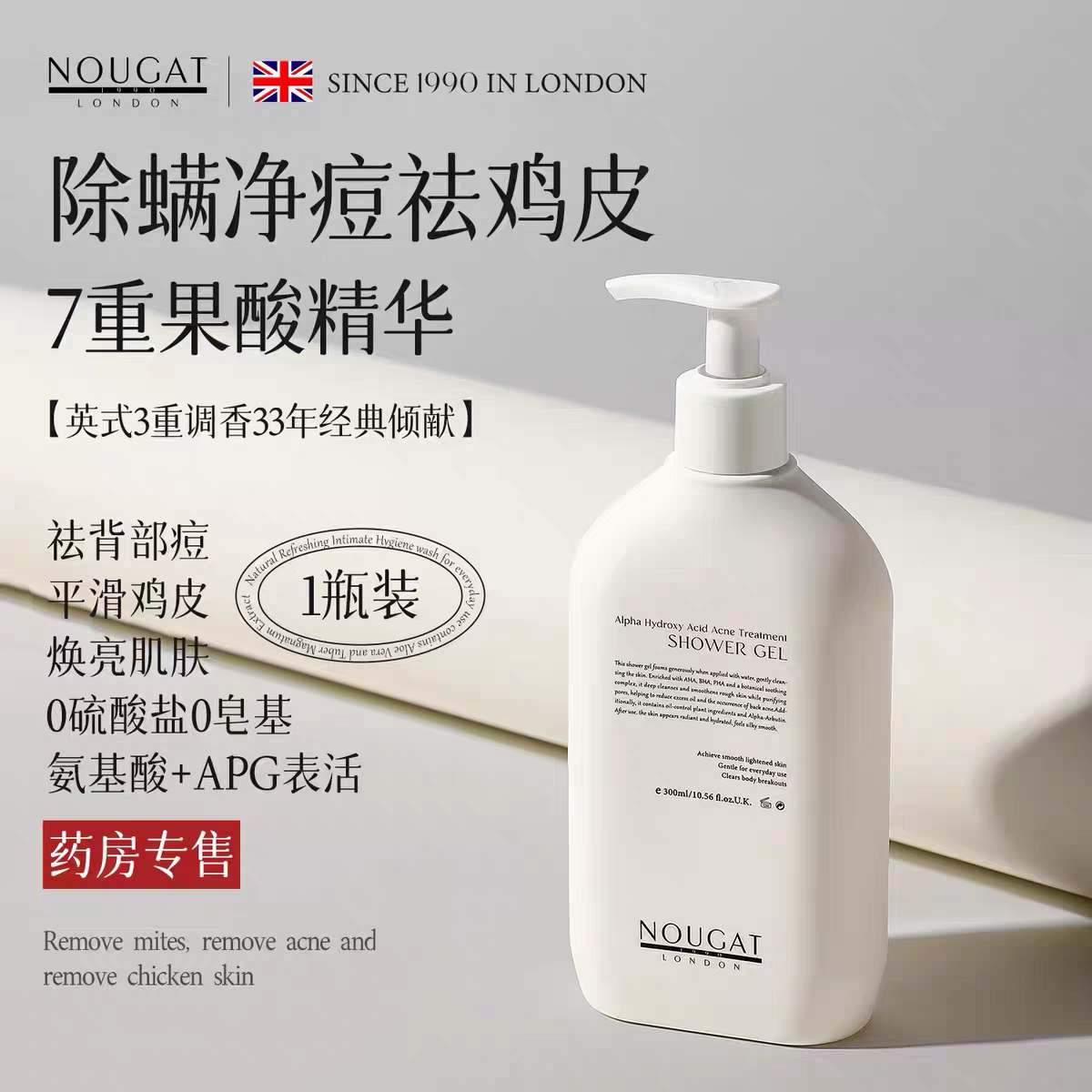 果酸除螨沐浴露后背祛痘鸡皮乳液持久留香成人女男士止痒正品