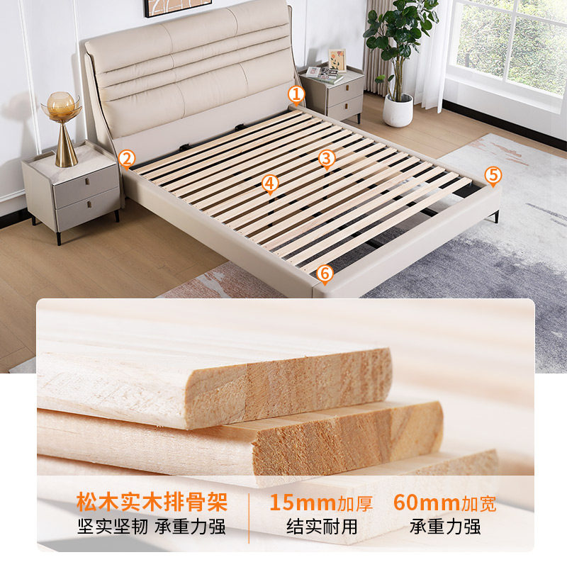意式真皮床主卧2米x2米2大床现代简约1.8米软包皮艺实木储物婚床