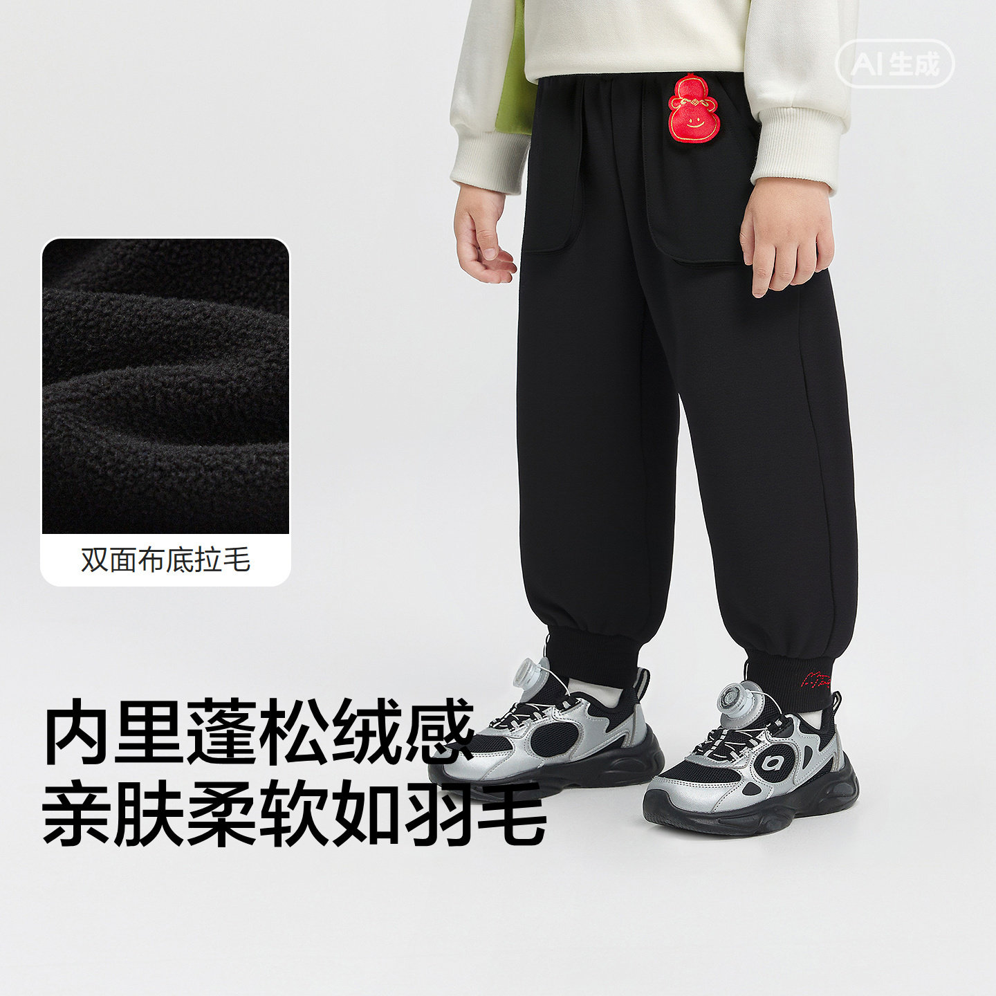 贵人鸟男童加绒裤子儿童加厚一体绒长裤2025新款冬季工装裤冲锋裤