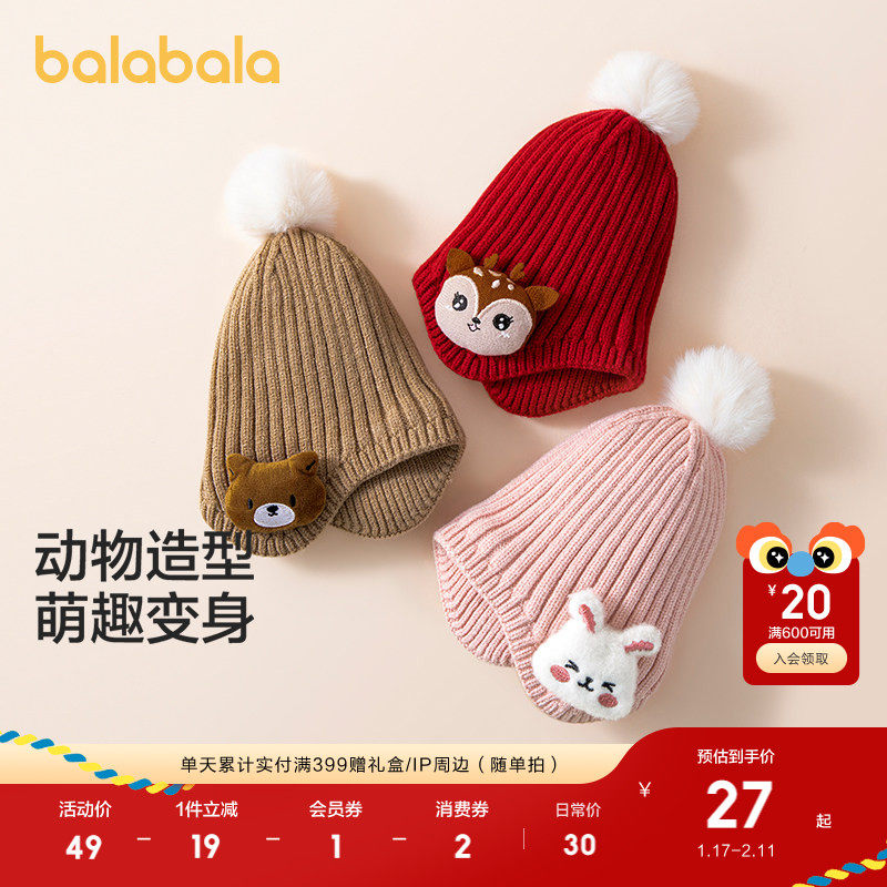巴拉巴拉儿童帽子男童女童可爱萌趣保暖帽护耳帽厚实舒适温暖冬季