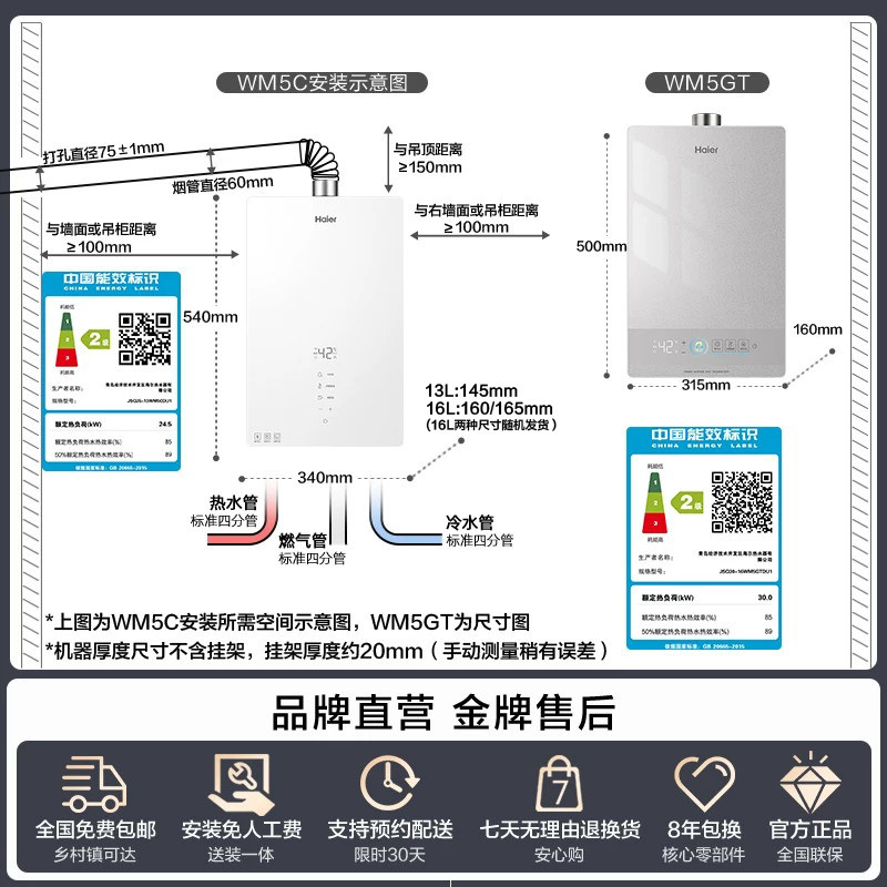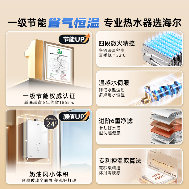 海尔官方燃气热水器天然气节能恒温水伺服16升13家用款白月光WM5C
