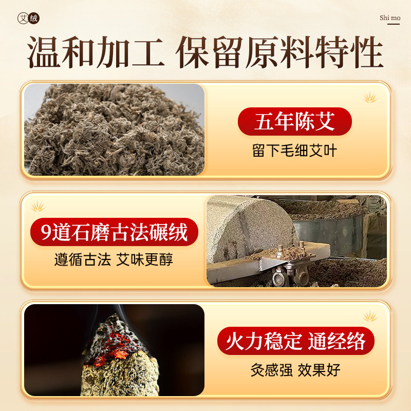 艾绒散装纯艾叶草石臼官方旗舰店正品陈年隔姜灸艾柱黄金艾灸盒