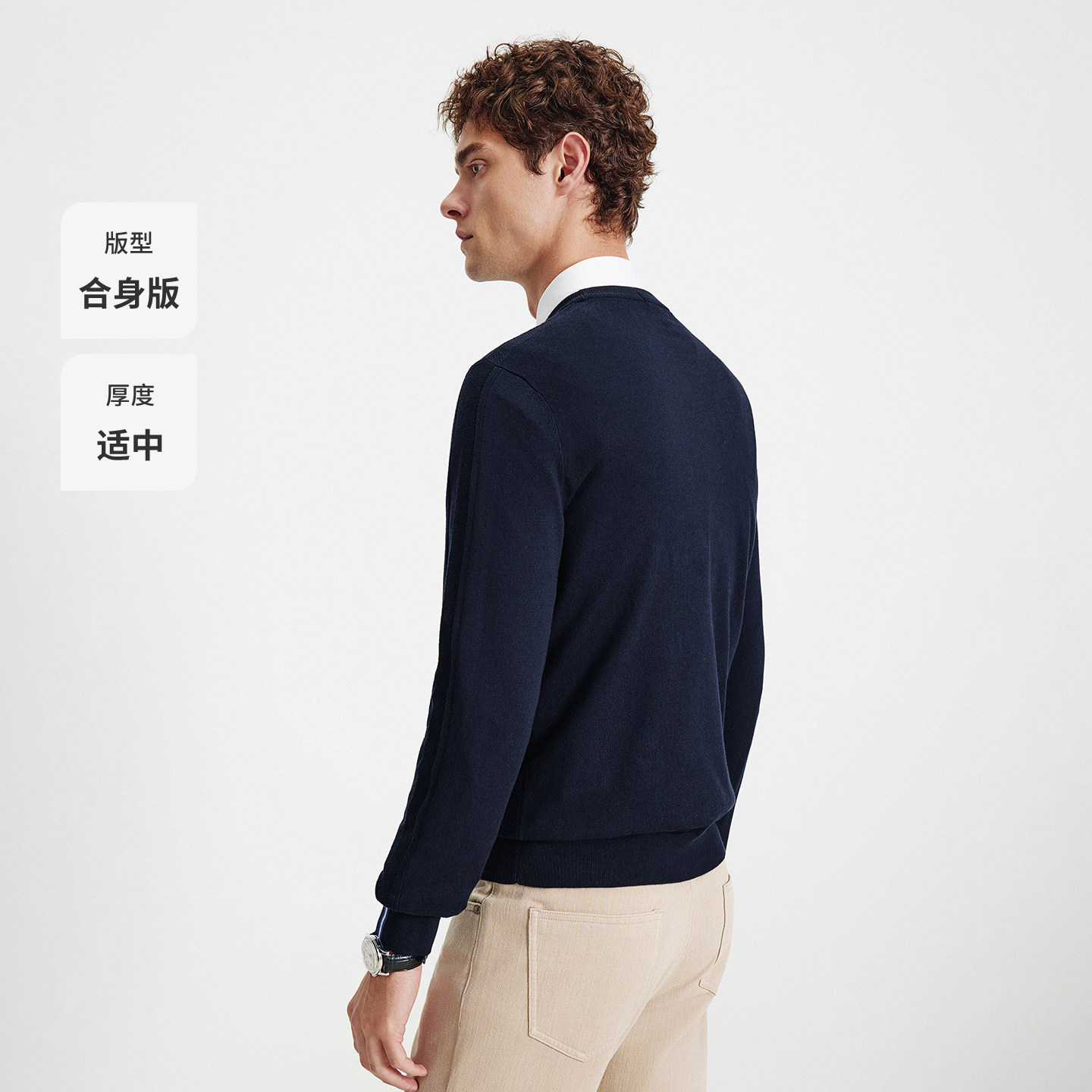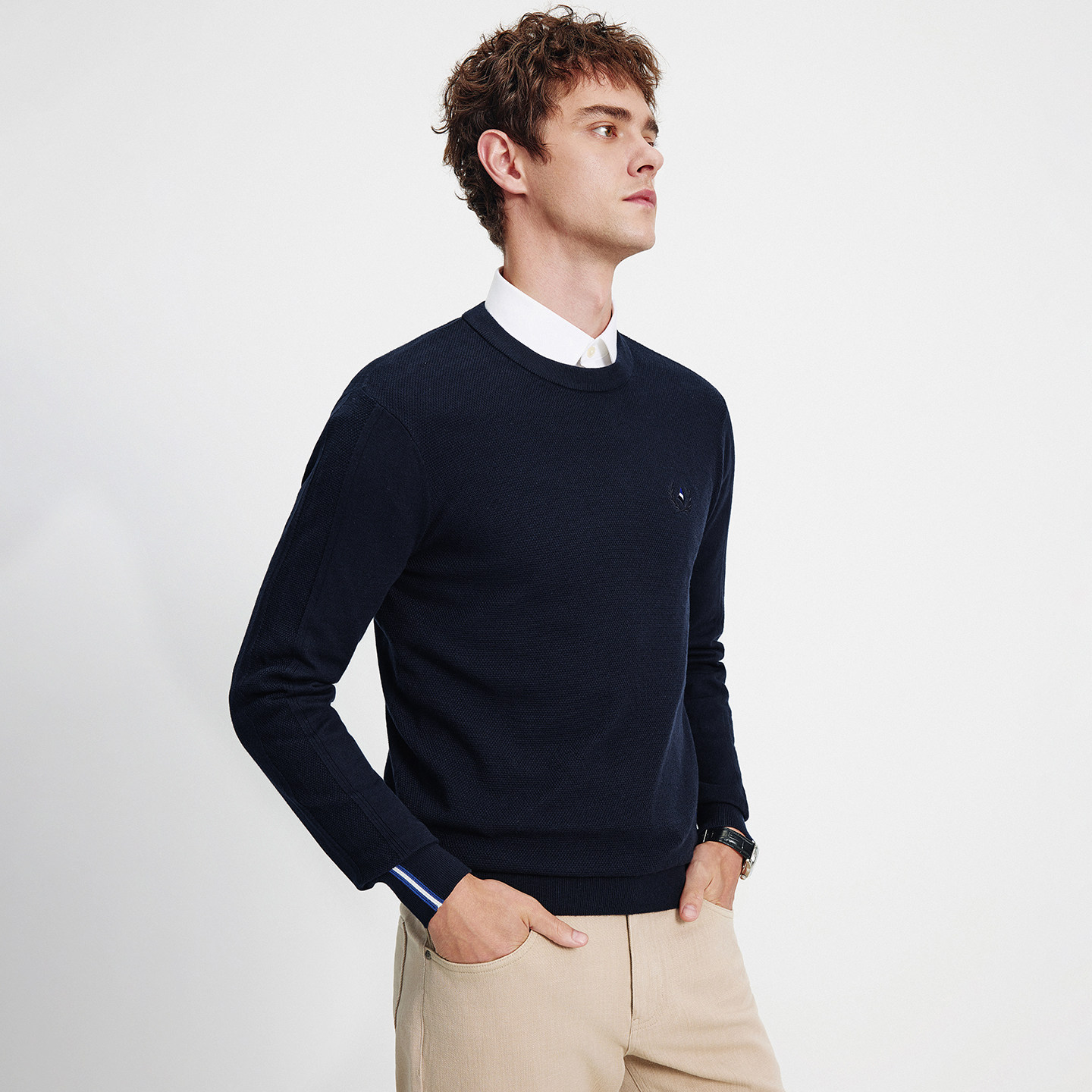Navigare意大利小帆船蓝色休闲羊绒毛衣男秋冬款保暖针织打底衫