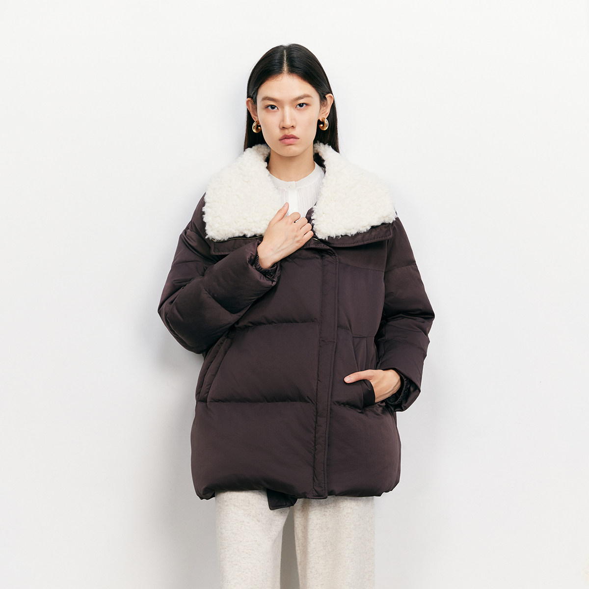 【鞠婧祎同款】鸭鸭2025年冬新款百搭短款女士纯色立领羽绒服外套
