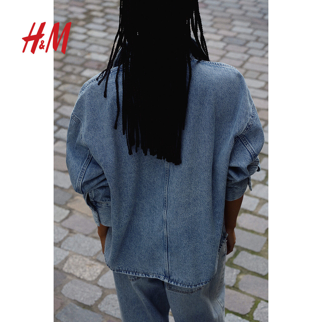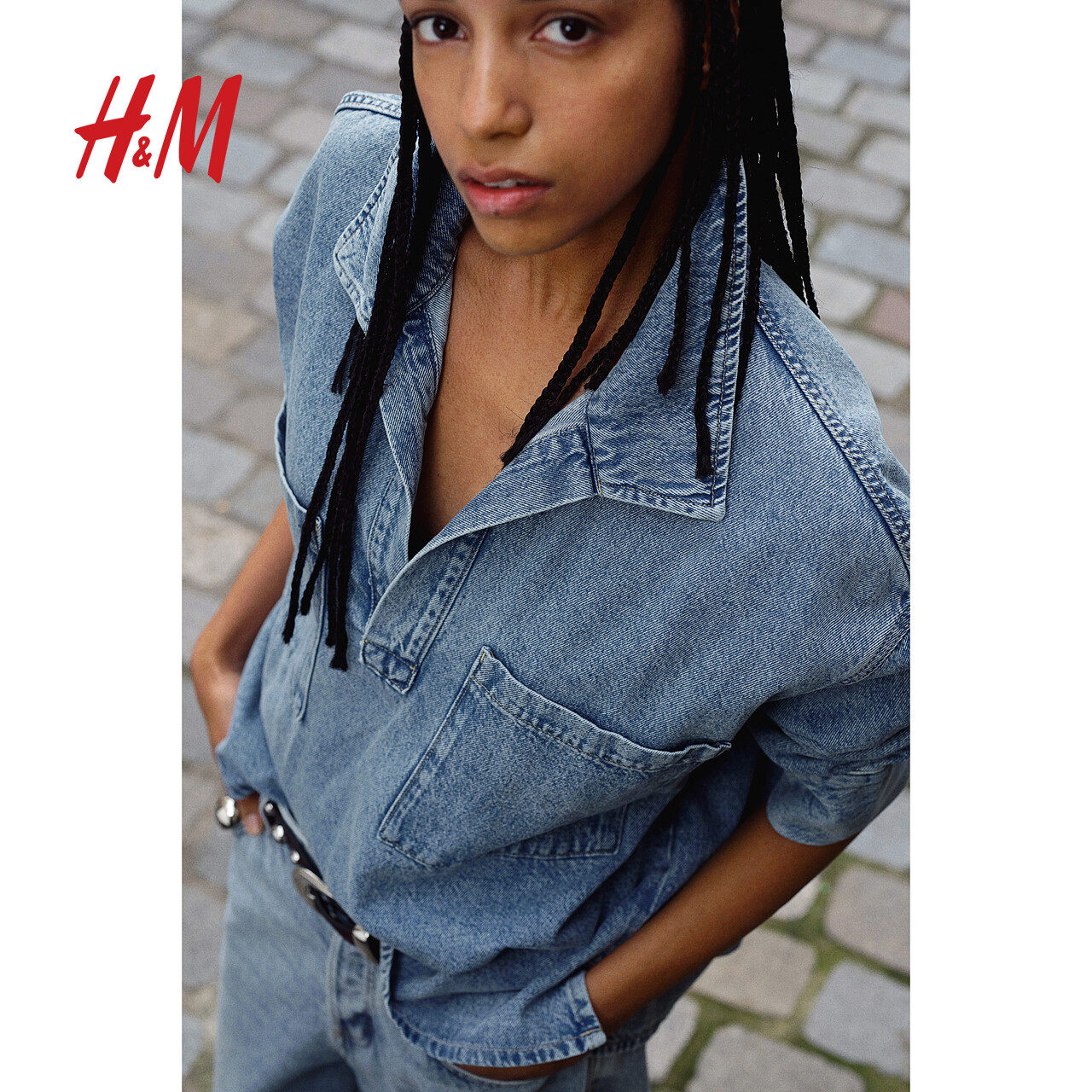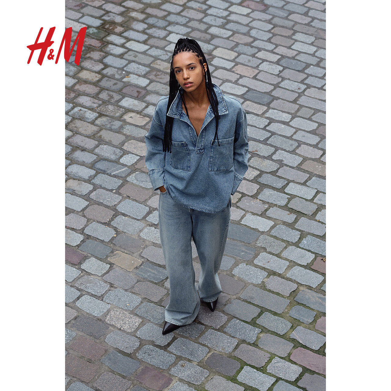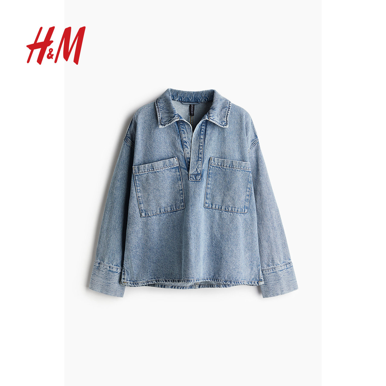 HM女装衬衫2025冬季新款宽松长袖休闲套头式复古牛仔衬衫1268625