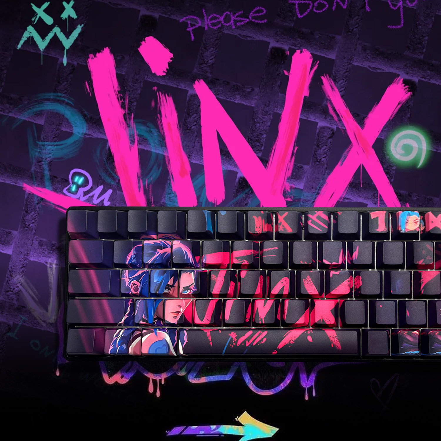 LOL金克丝双城之战侧刻透光机械键盘键帽PBT热升华游戏原厂高度