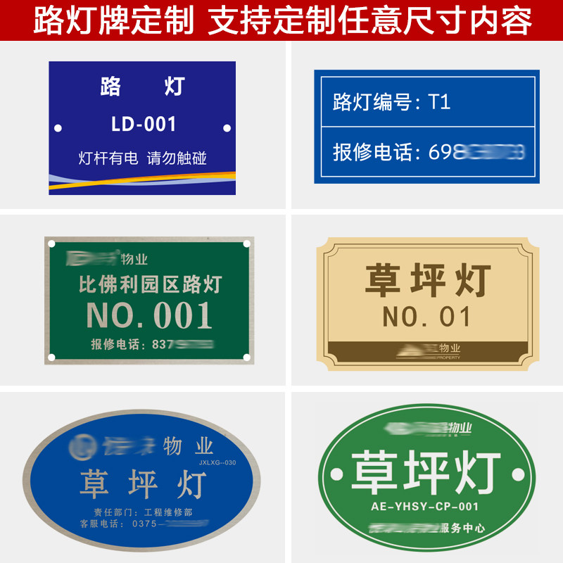 物业小区铝制高杆灯铭牌低杆灯标识牌草坪灯草地灯牌监控号牌定做