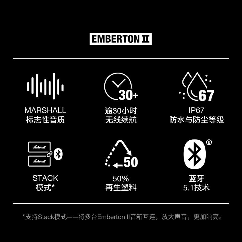 MARSHALL EMBERTON II限定版无线蓝牙音响户外防水便携小音箱