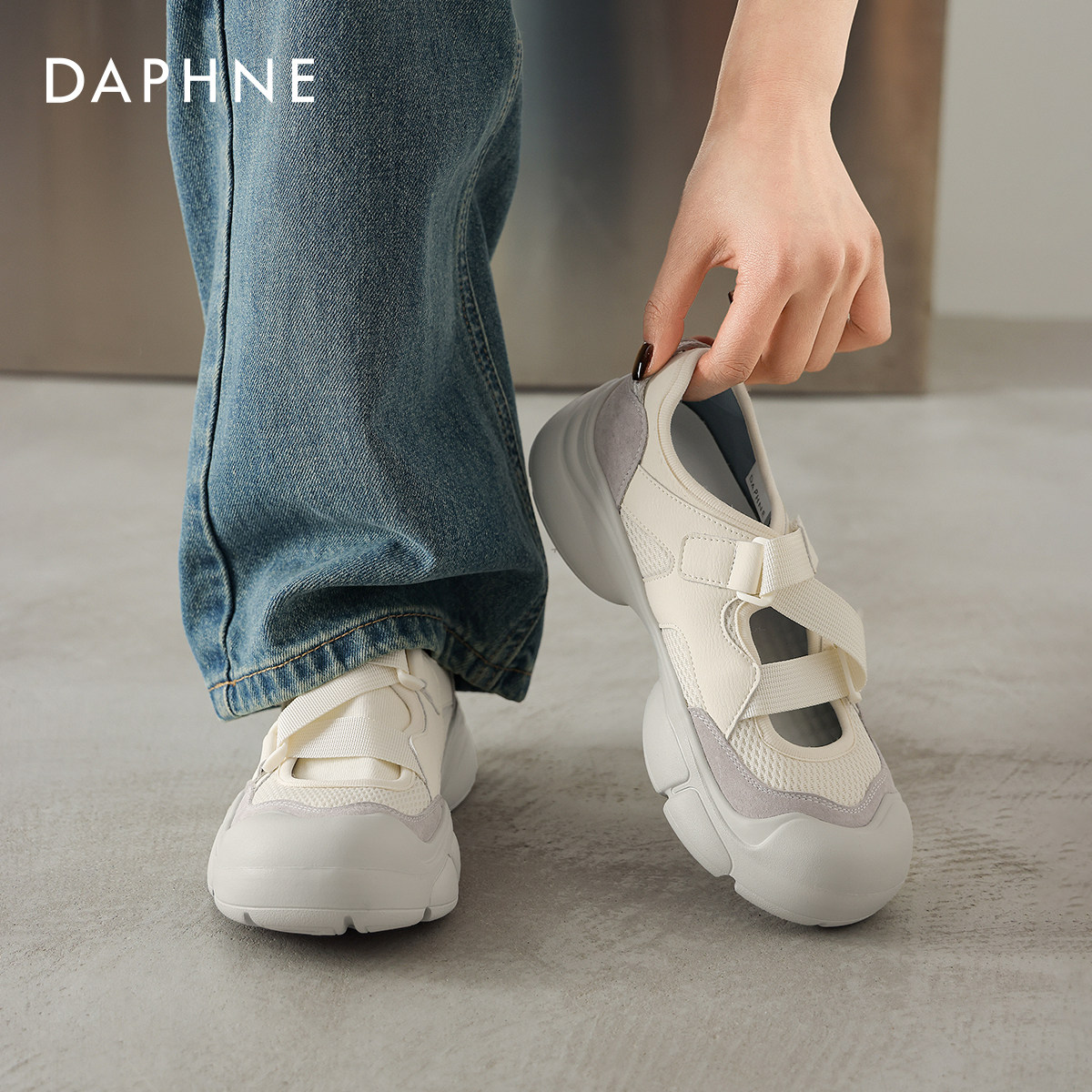 达芙妮丑萌运动玛丽珍鞋子女2026新款芭蕾厚底增高魔术贴休闲凉鞋