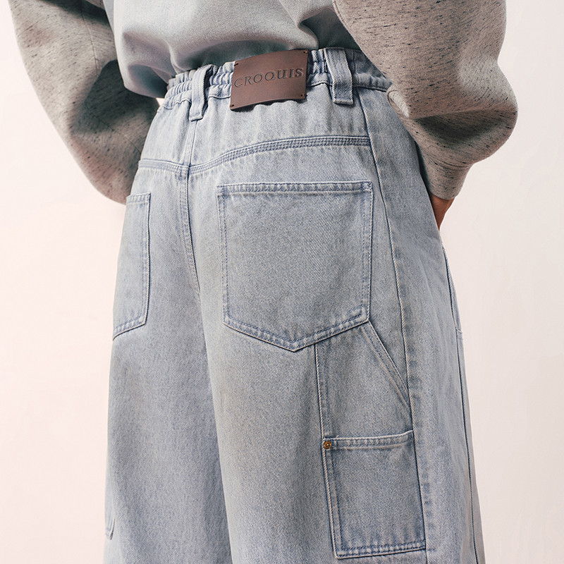RAPPEYE 国潮设计感复古美式高街宽松显瘦直筒侧袋弯刀阔腿牛仔裤