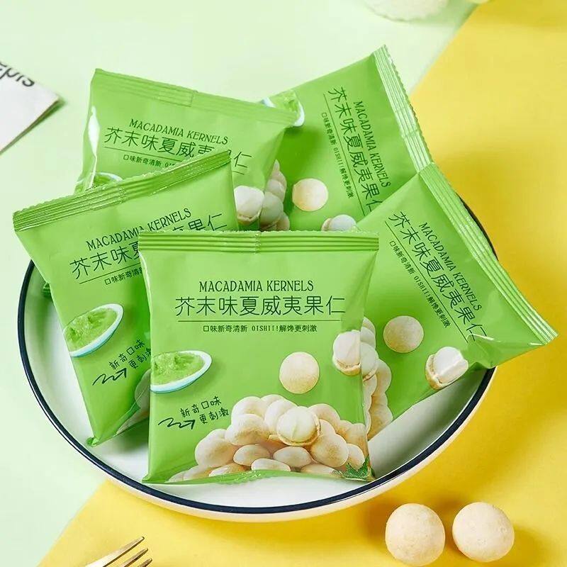 网红爆款】芥末味夏威夷果仁独立包装净重无壳干果休闲零食去壳辣