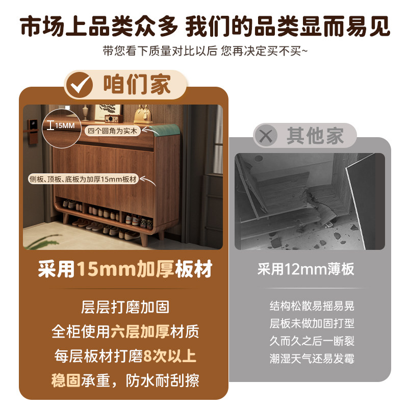 鞋柜实木超薄翻斗15cm家用门口大容量经济型省空间北欧简约玄关柜