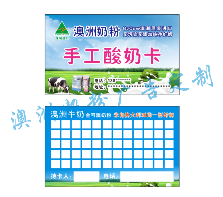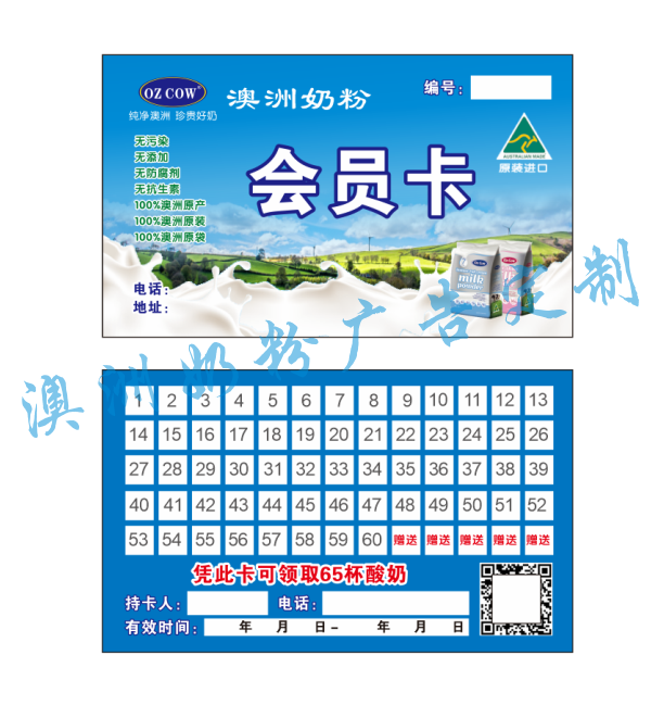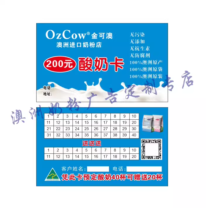 【60杯90杯半年酸奶卡】金可澳惊喜福利美食卡券牛奶粉体验卡名片