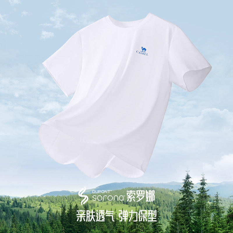 骆驼男装速干短袖正肩T恤上衣夏季新款索罗娜户外休闲透气吸汗男