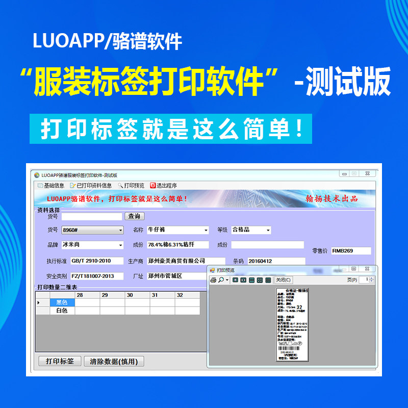 骆谱条码标签打印管理软件EXCEL导入PDA扫码出入库内外箱关联RFID服装鞋帽物流贴纸批量套打防伪防重软件开发