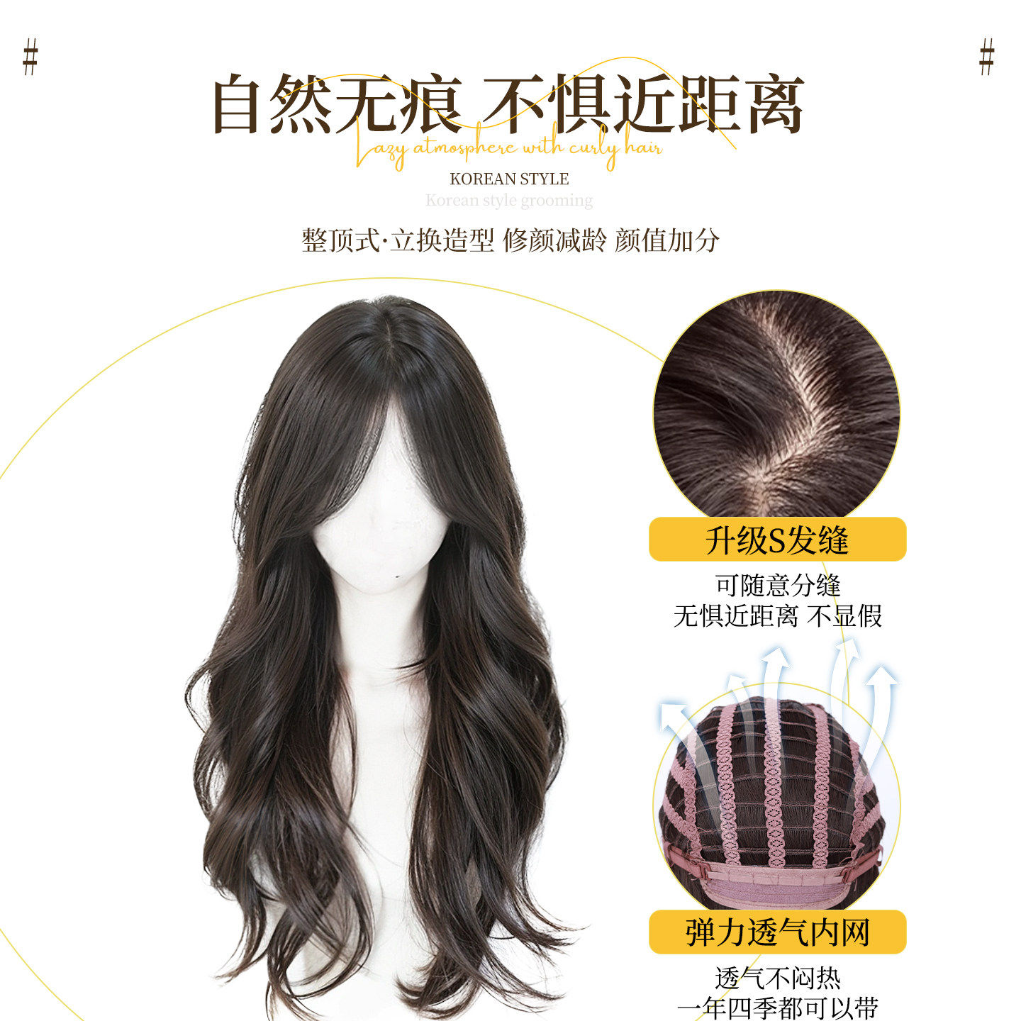 假发全头套女仿真发自然无痕中分刘海大波浪假发女长发整顶假发套