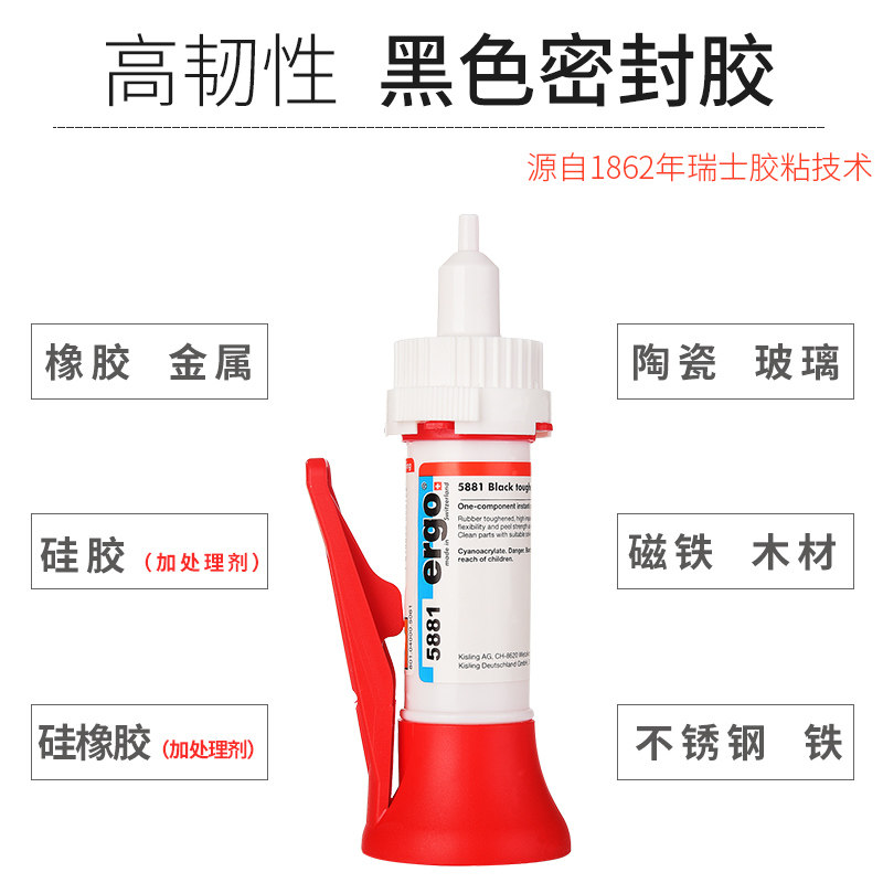 ergo5881瑞士进口粘硅橡胶金属塑料陶瓷木头玻璃磁铁铁软性耐高温抗冲击专用多功能粘得牢黑色强力快干胶水
