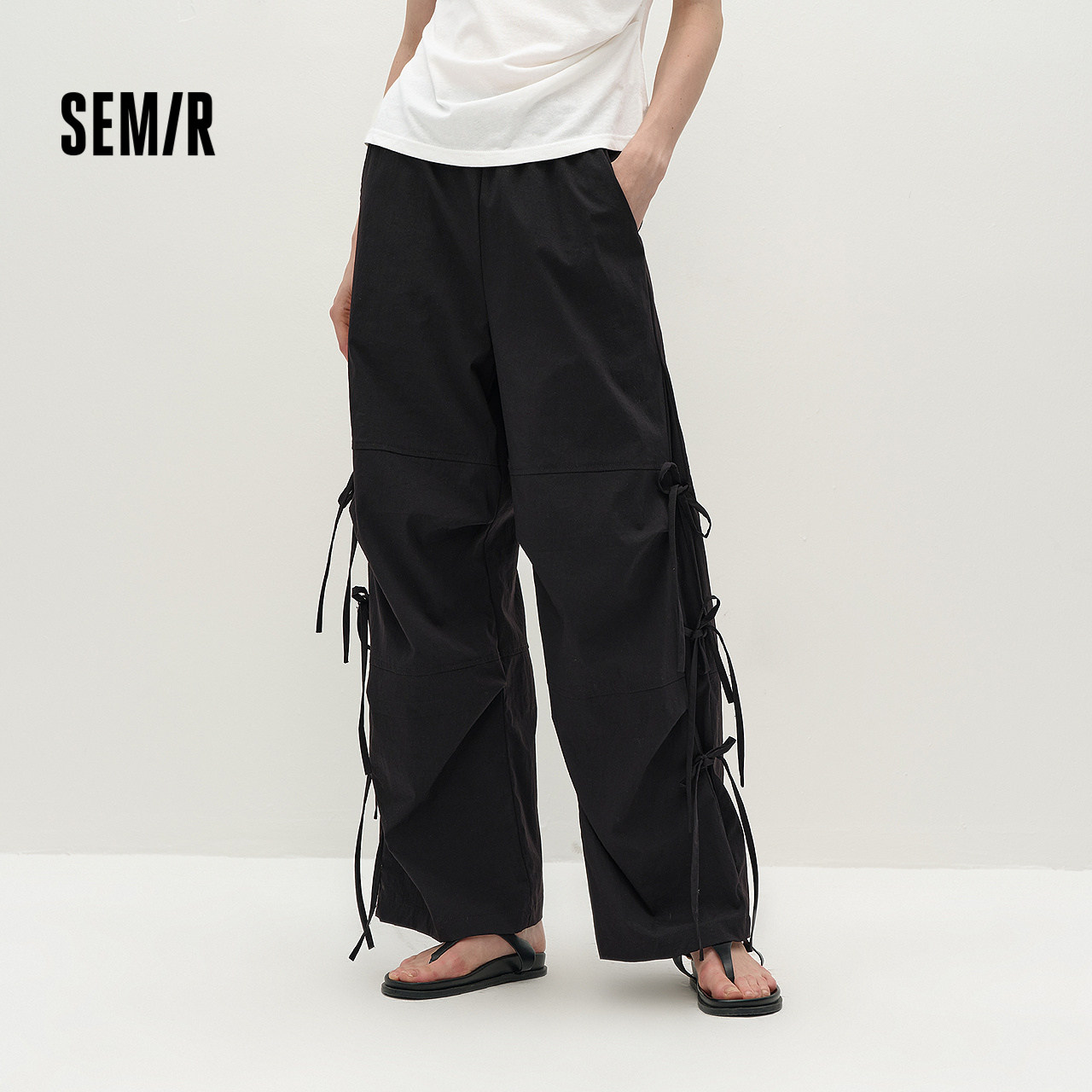 商场同款|森马休闲裤女秋蝴蝶结宽松肌理长裤2025新款甜酷阔腿裤