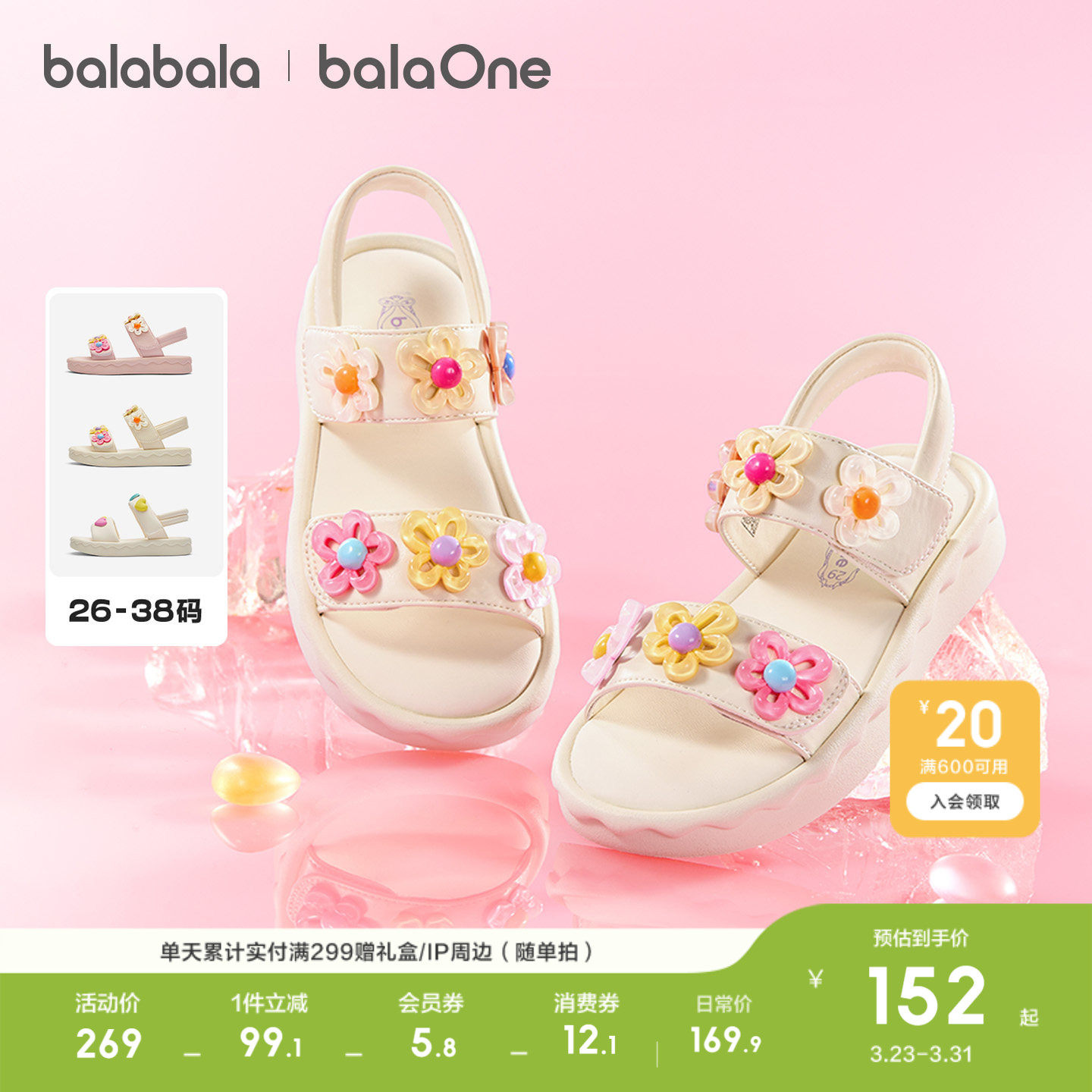 【balaOne】巴拉巴拉童鞋儿童凉鞋女童鞋子2026夏新款软弹休闲鞋