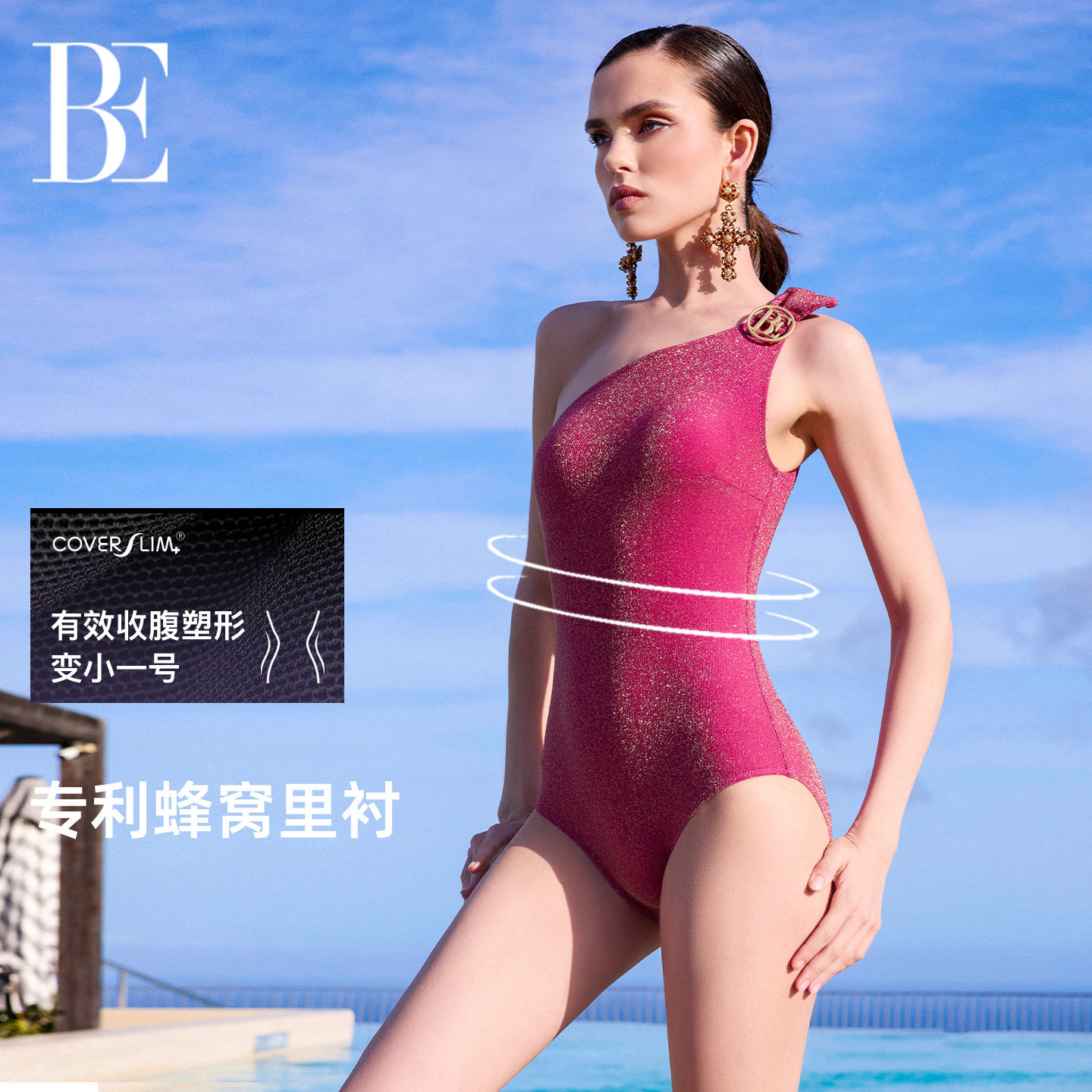 【江疏影同款】BE范德安QUEEN系列火龙果连体泳衣女裹裙度假温泉