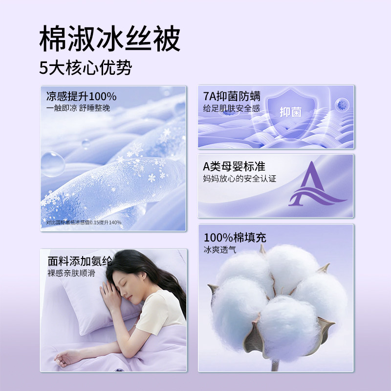 水星家纺第5代雪糕被夏凉被婴幼儿A类可水洗可机洗空调被抑菌被子