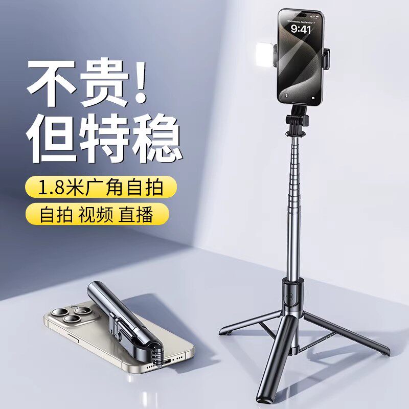 叠品A21P2025新款金属多功能补光自拍杆三脚架遥控拍照神器手机直播支架360°旋转拍照抖音蓝牙便携式防抖