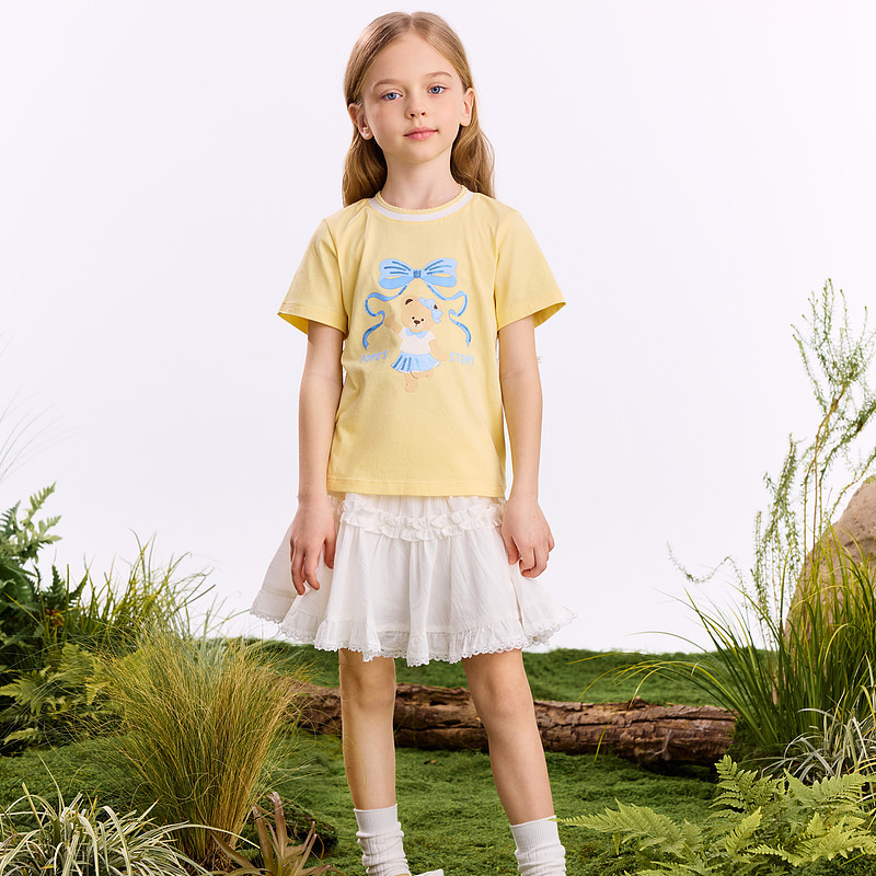真维斯童装女童短袖t恤2025新款男童夏季纯棉半袖儿童纯色上衣女