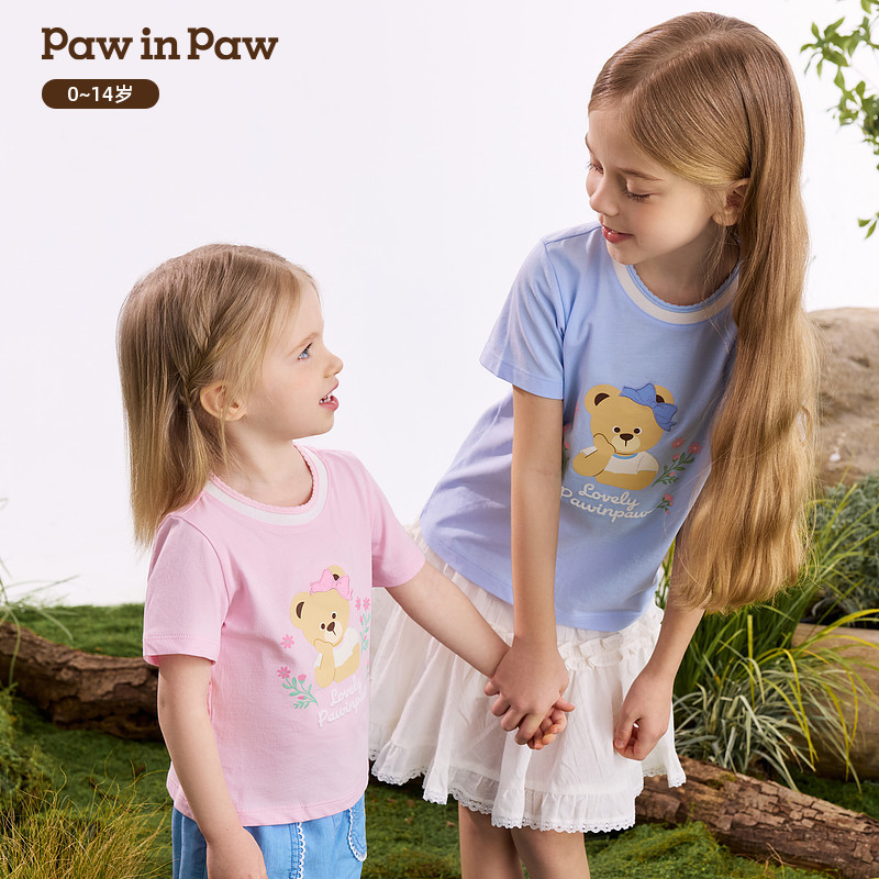 【长绒棉】PawinPaw卡通小熊童装26年春夏季新款女童女宝宝T恤