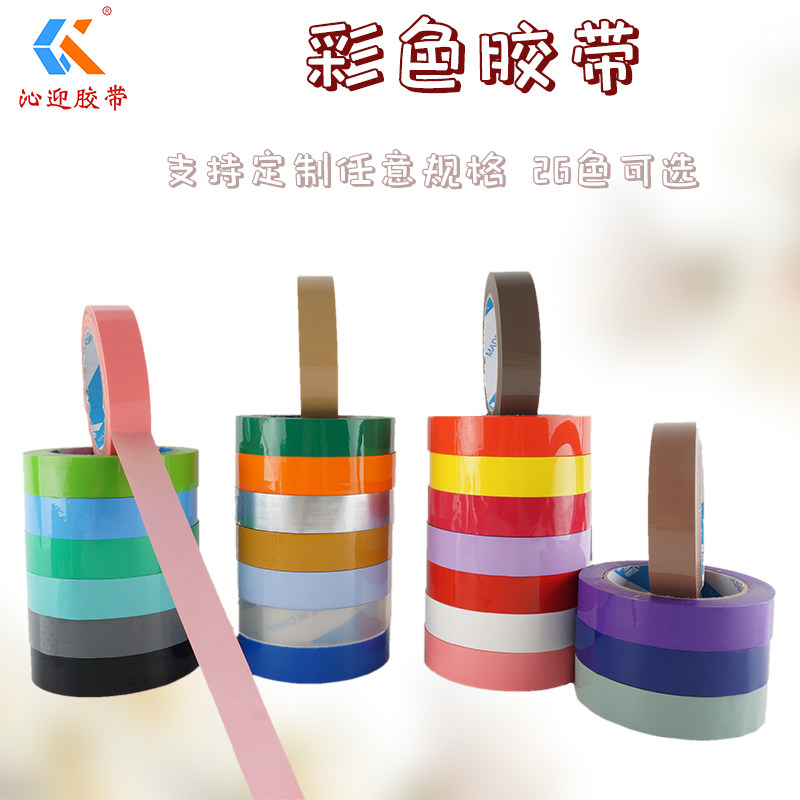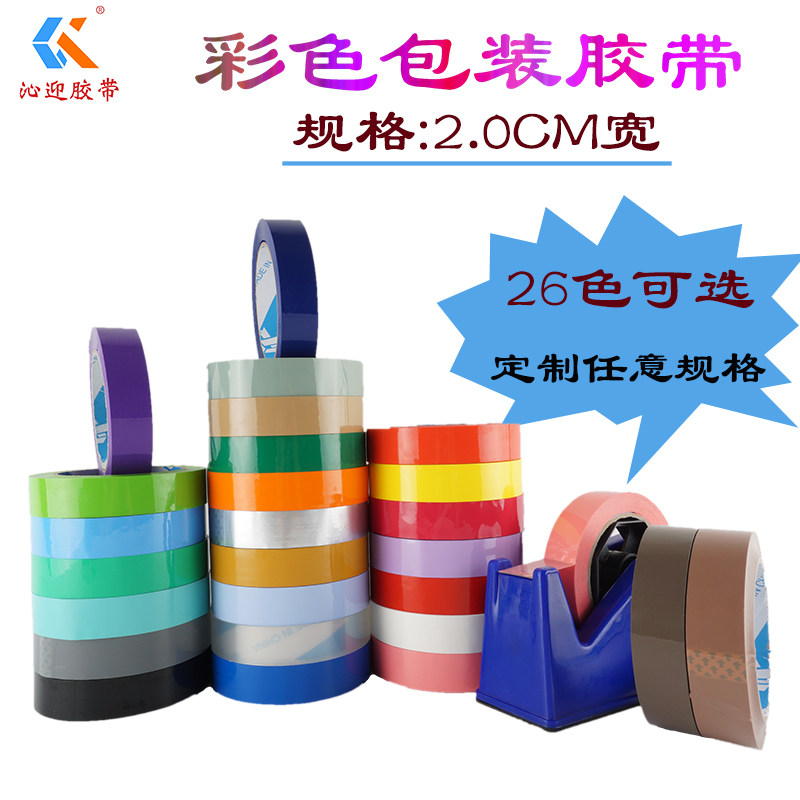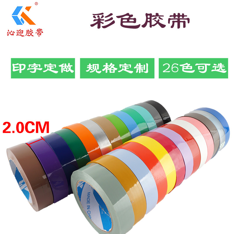 沁迎2CM彩色包装胶带半透明封口胶布蔬菜捆扎带染布区分胶纸定制logo印字封箱胶定做整箱批发红黄蓝绿白褐橙