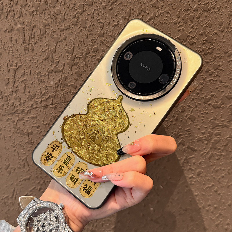 适用华为mate60pro手机壳新款mate70新年金箔葫芦mate70pro高级感mate50全包pro防摔磨砂m40小众创意招财女款