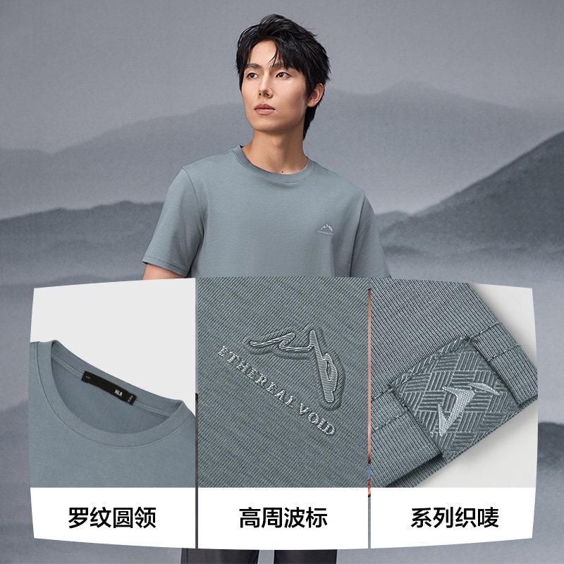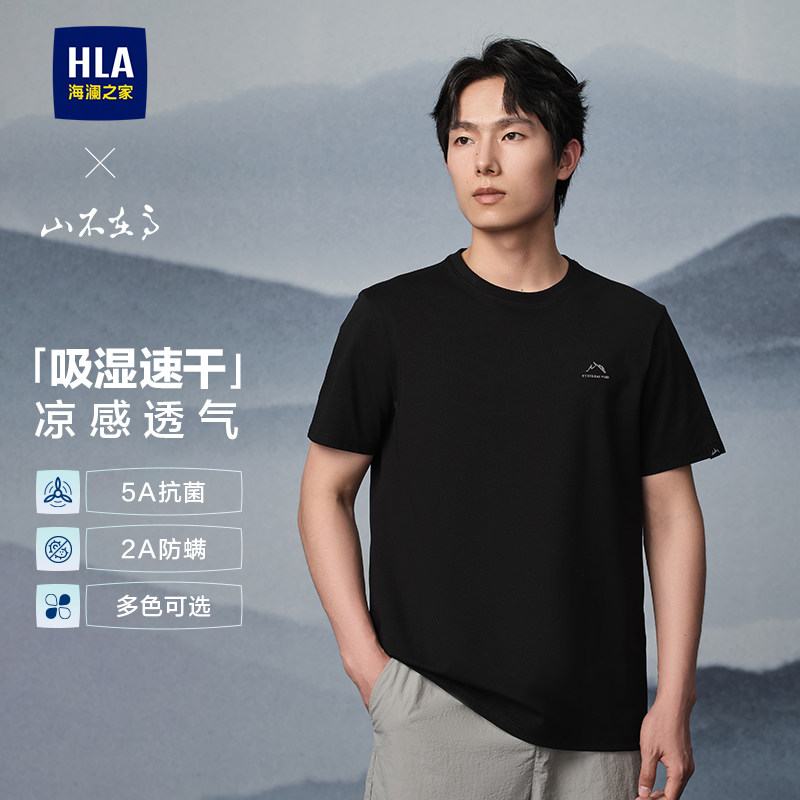HLA/海澜之家山不在高系列吸湿速干短袖T恤25春夏新款刺绣圆领男