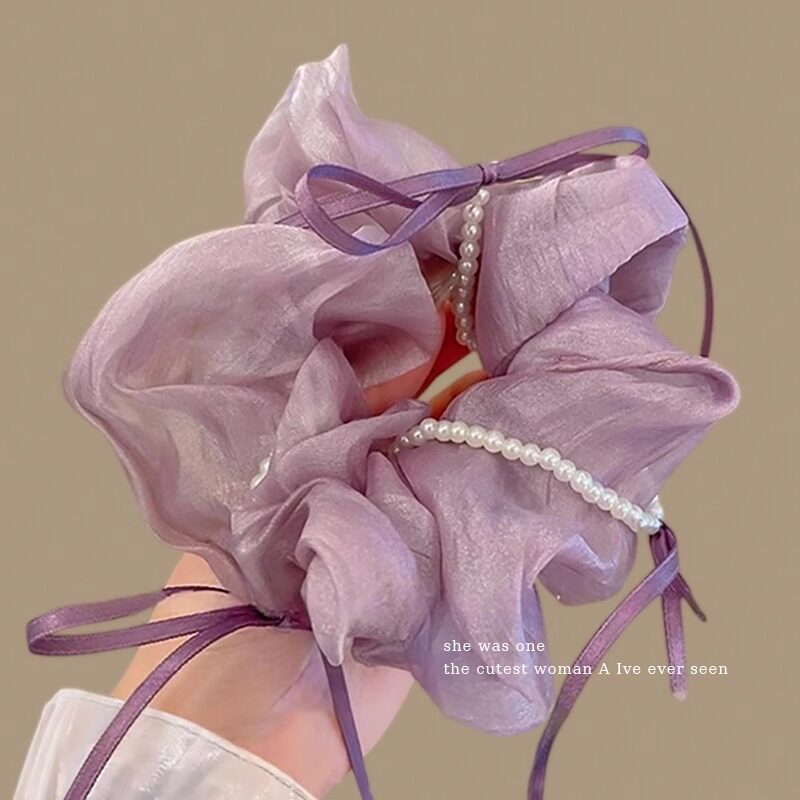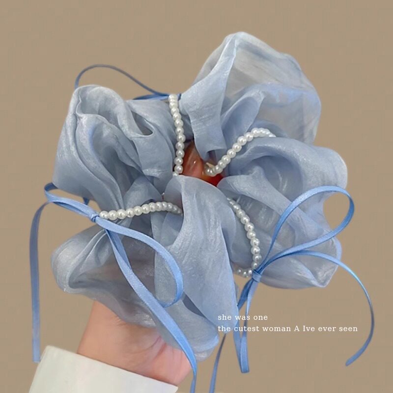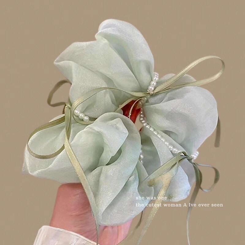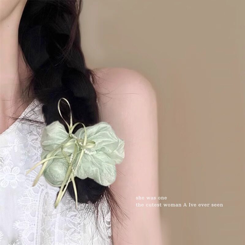 珍珠蝴蝶结大肠发圈女高级感扎头头绳绿色森系发绳麻花辫发饰超大