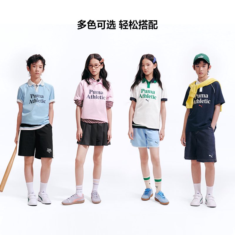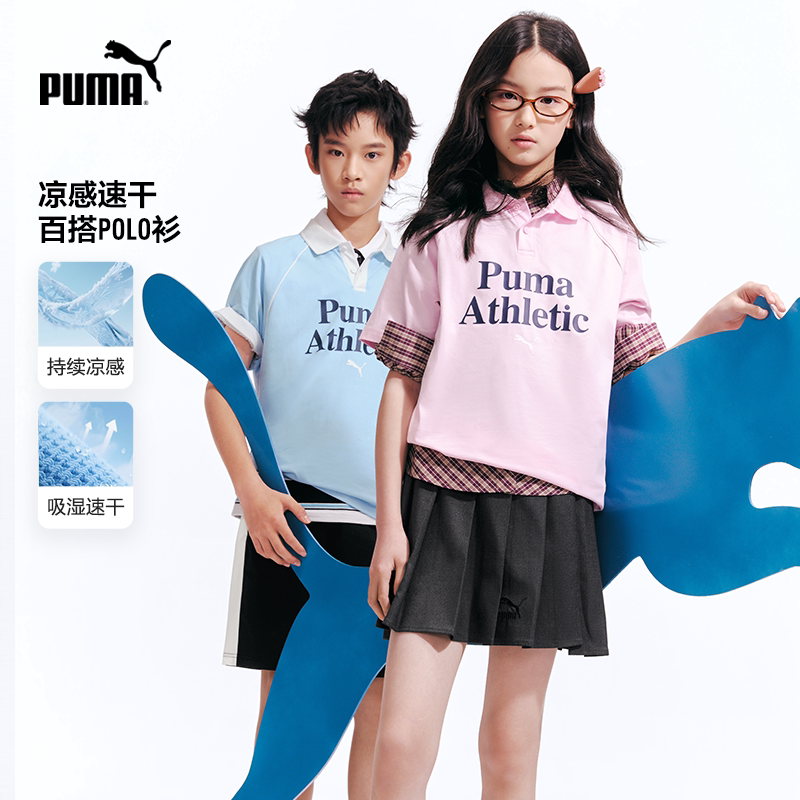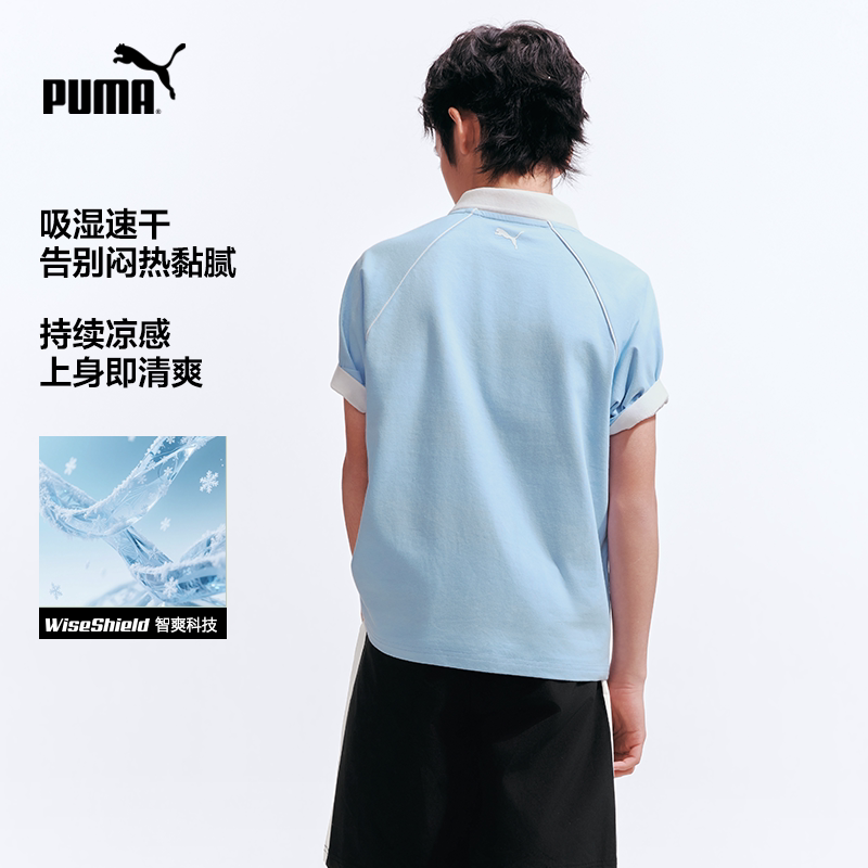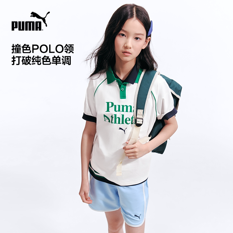PUMA彪马童装26夏季儿童短袖T恤撞色拼接Polo领凉感速干运动上衣