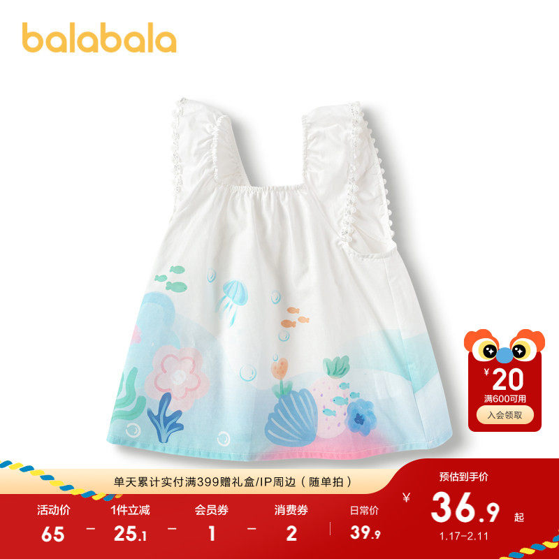 巴拉巴拉童装女童背心儿童宝宝小吊带方领上衣海滩度假风夏装印花