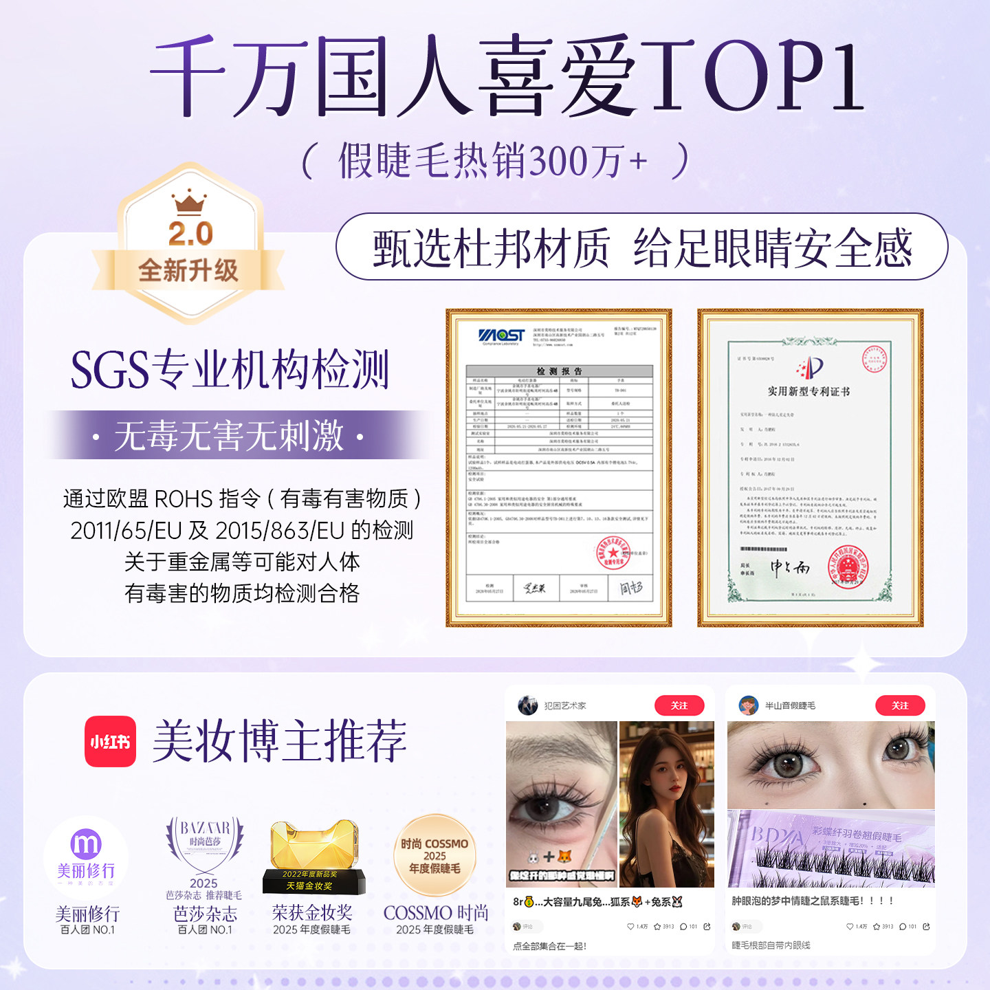 无梗假睫毛免胶自粘可重复使用2026新款自然仿真女眼睫毛贴0甲醛