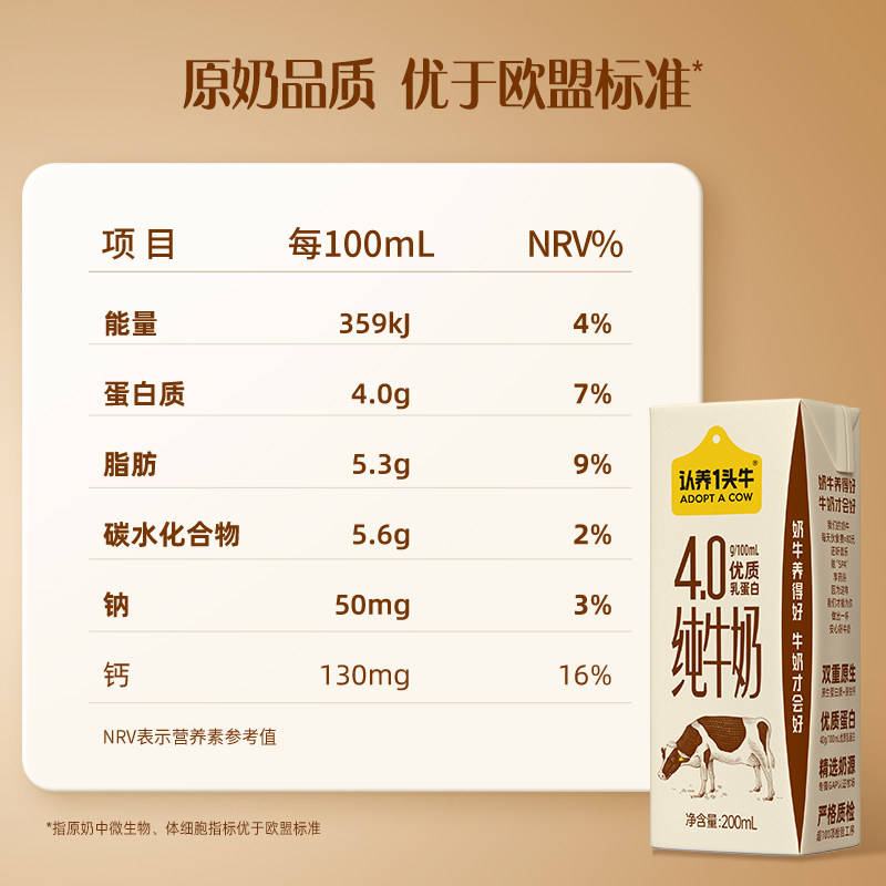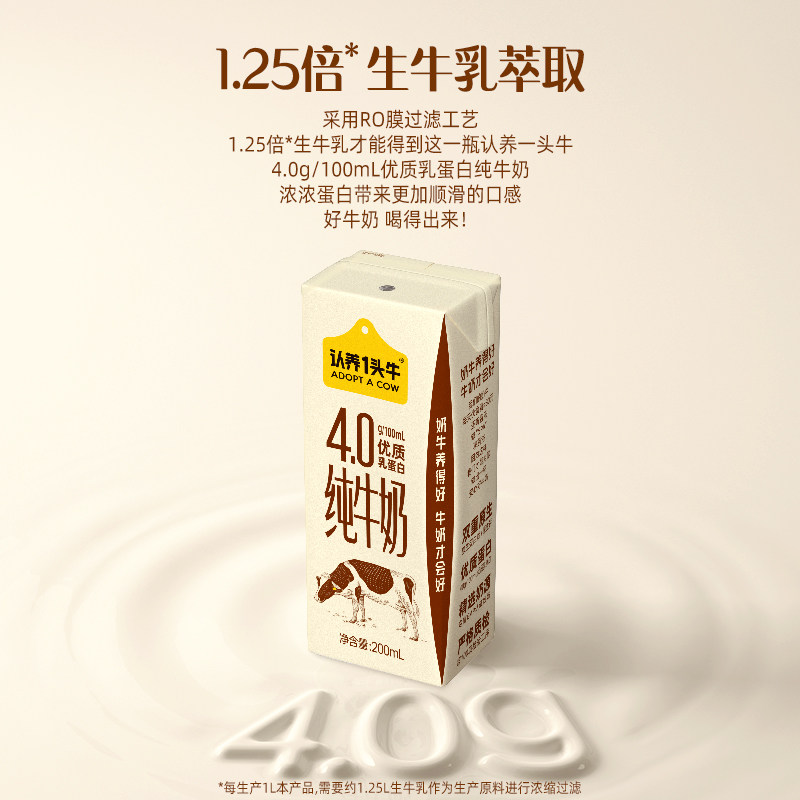 认养一头牛4.0蛋白纯牛奶200ml18盒礼盒高钙送礼营养早餐12月产