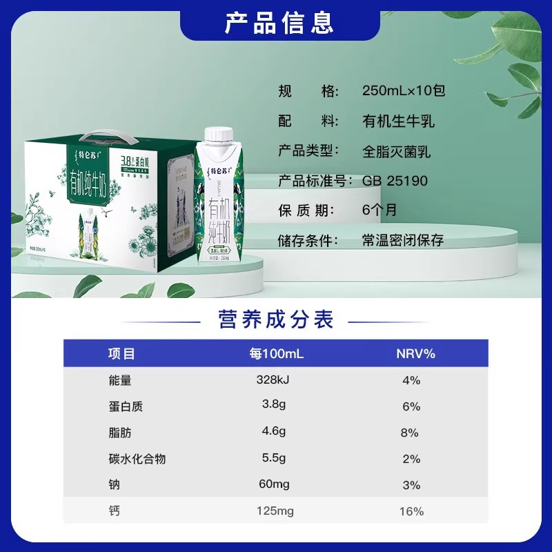 伊利金典【有机】纯牛奶整箱3.6g蛋白中欧双认证学生早餐正品礼盒